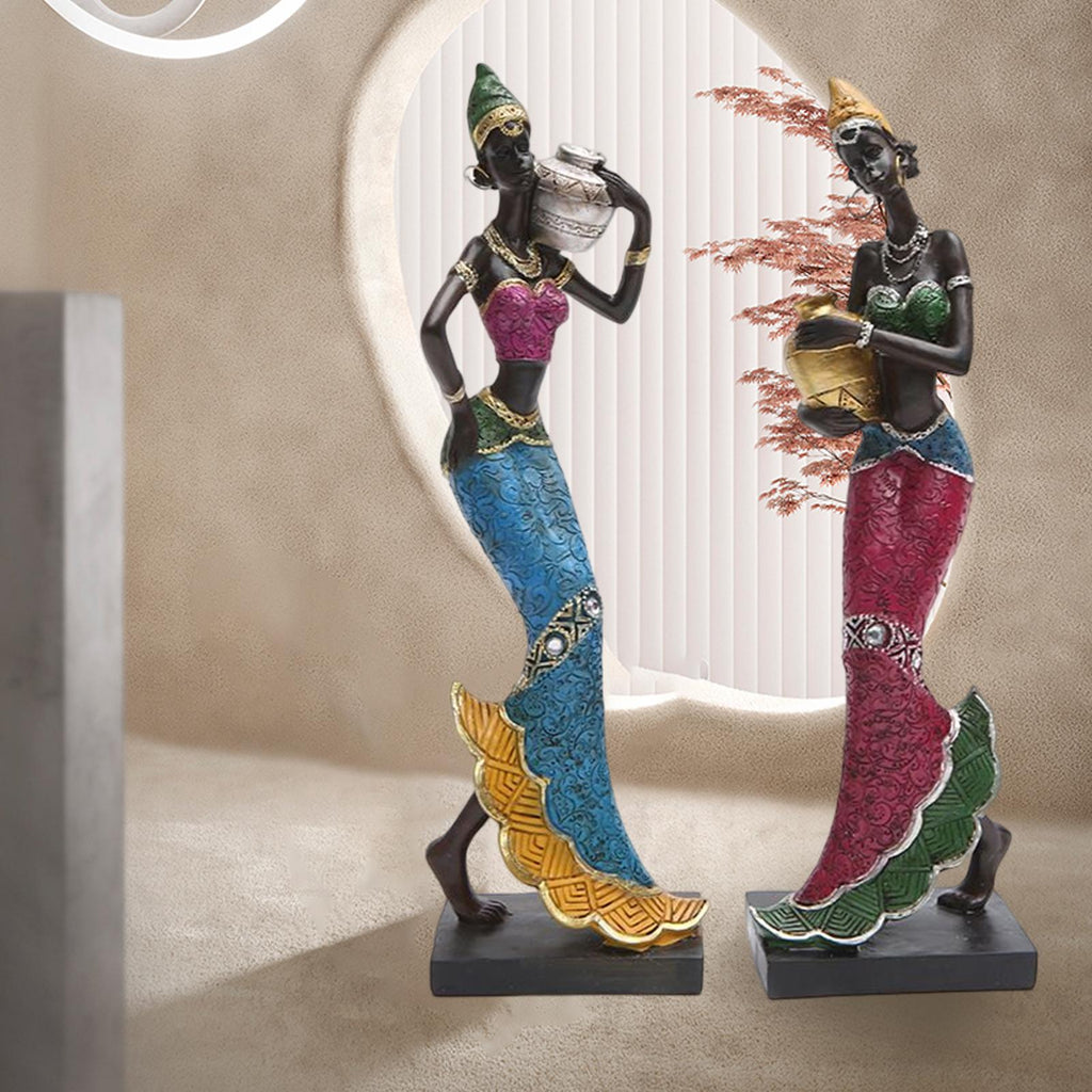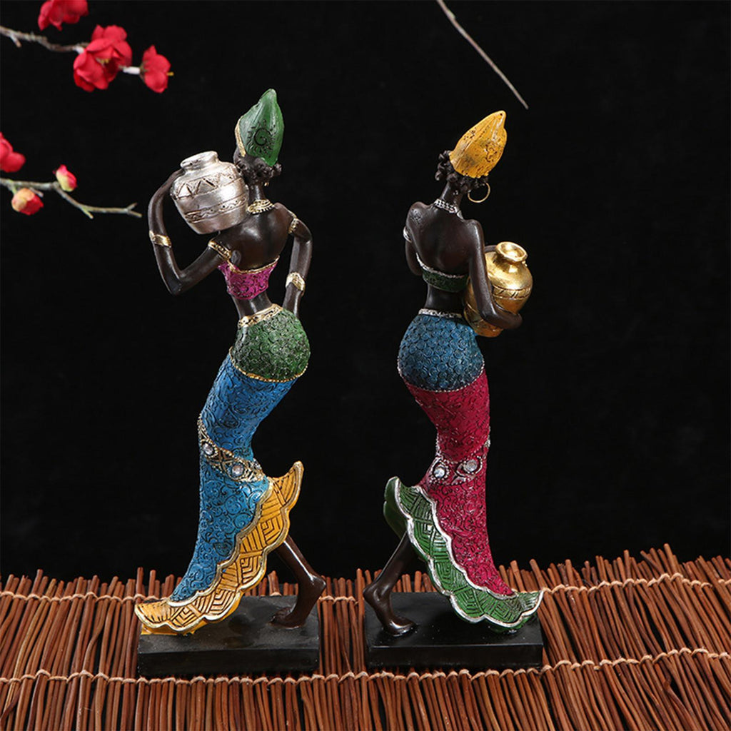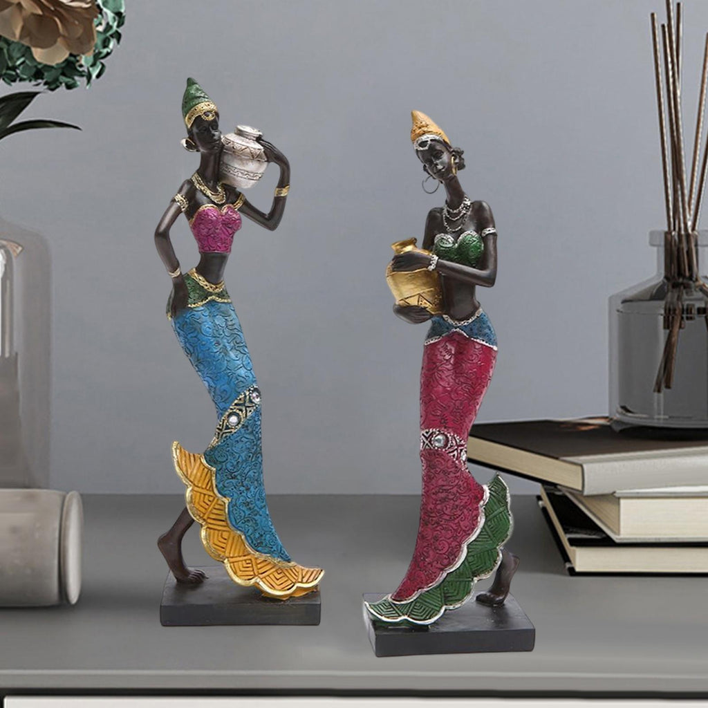 Maxbell African Sculpture Tribal Lady Figure Dolls Ornaments for Desktop Decorations gold