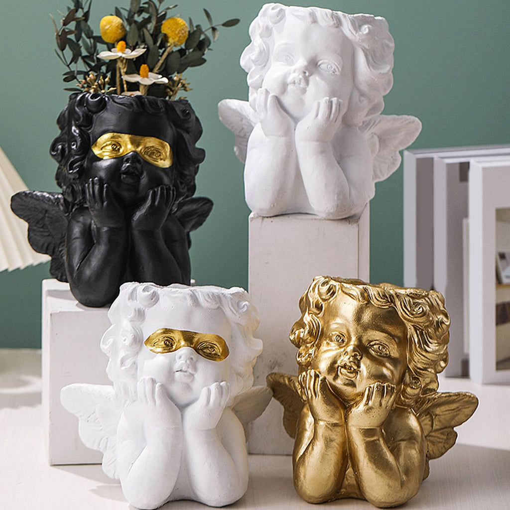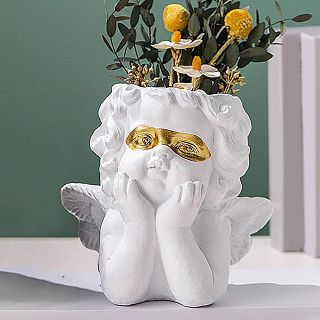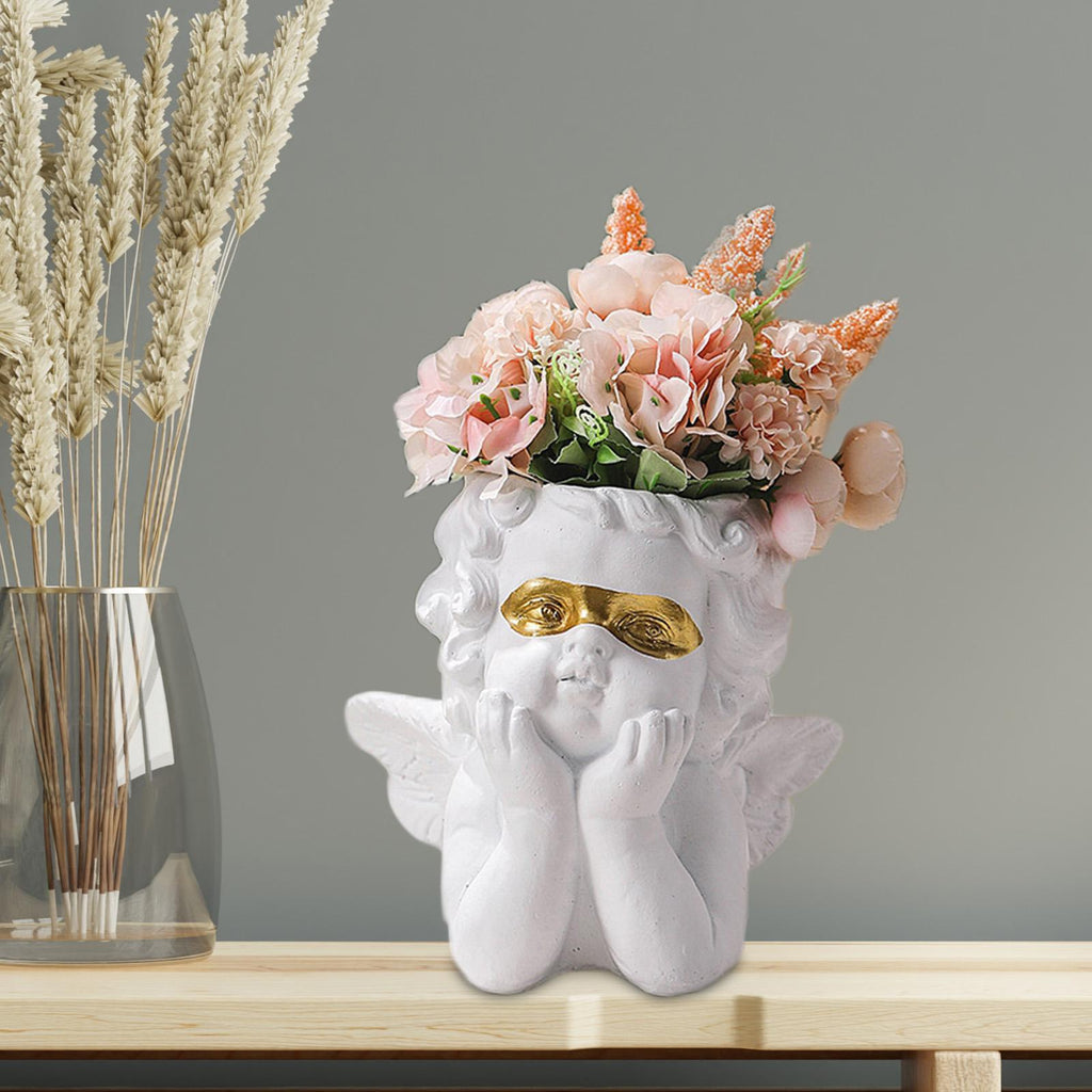 Maxbell Maxbell Angel Statue Crafted Planter Pot Sculpture for Art Decoration White Gold