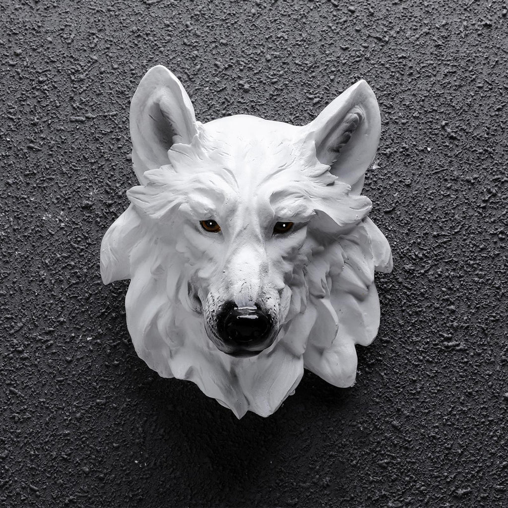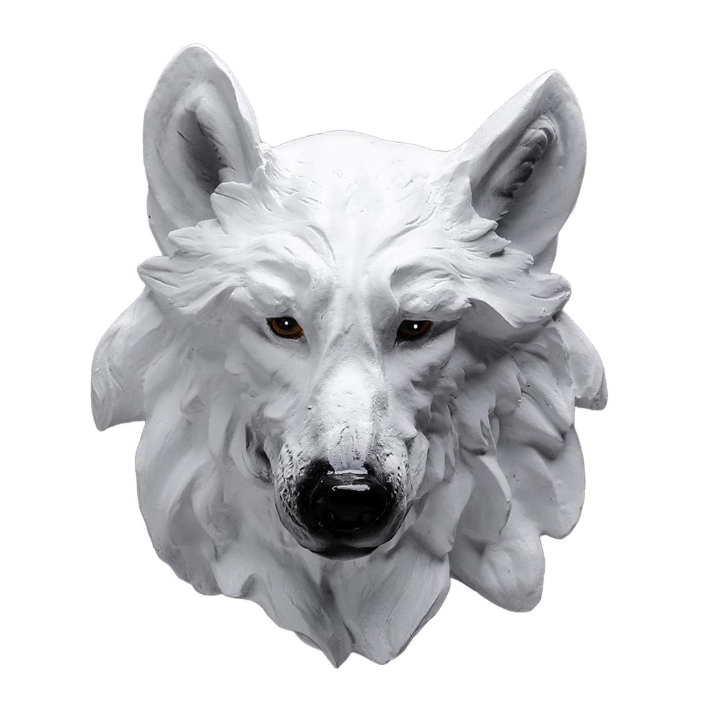Maxbell Animal Wolf Head Wall Art Decorations Bust Wall Statue Fine Workmanship White