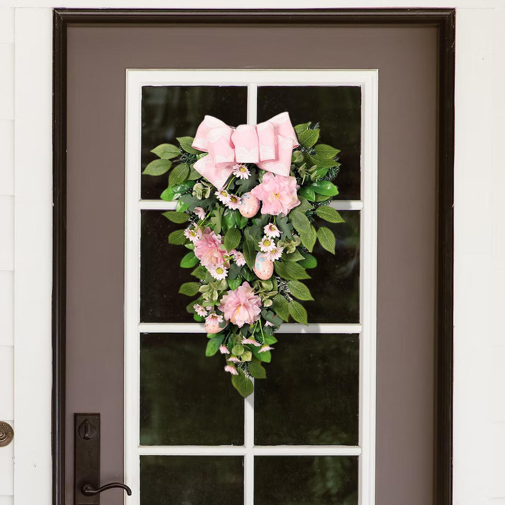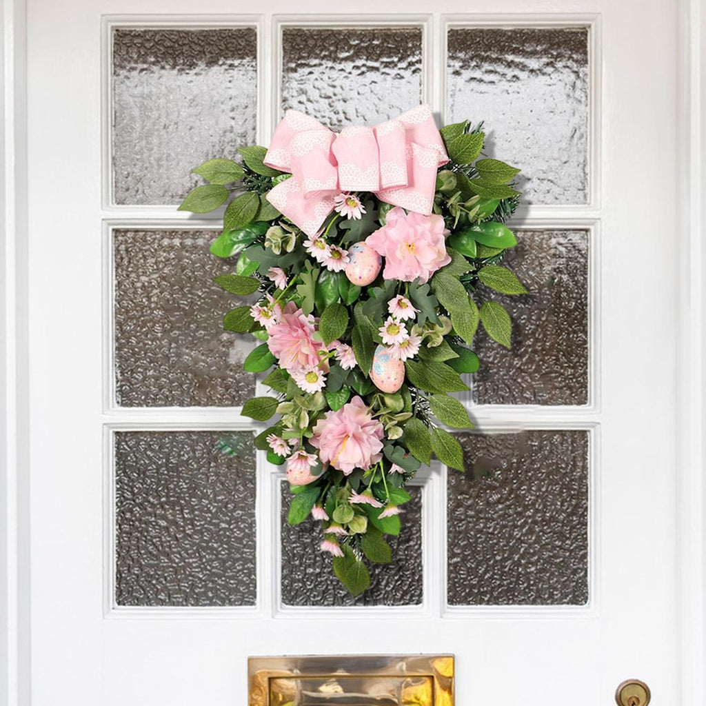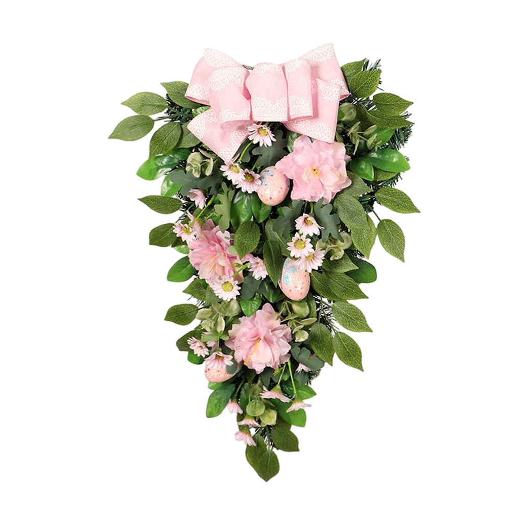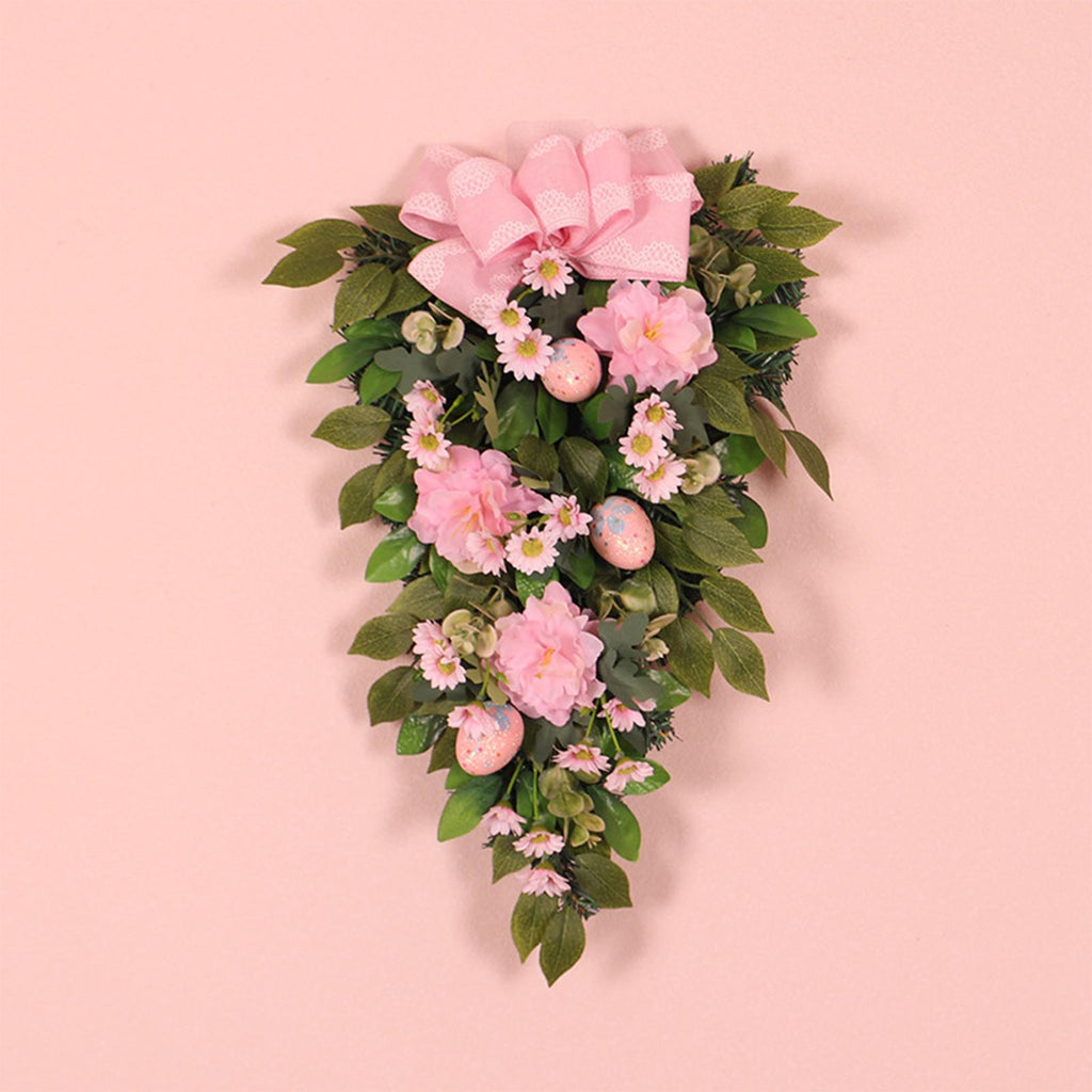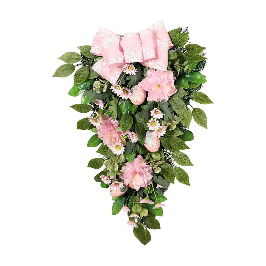 Maxbell Artificial Easter Teardrop Wreath Wall Hanging Swag for Party Garden Decor