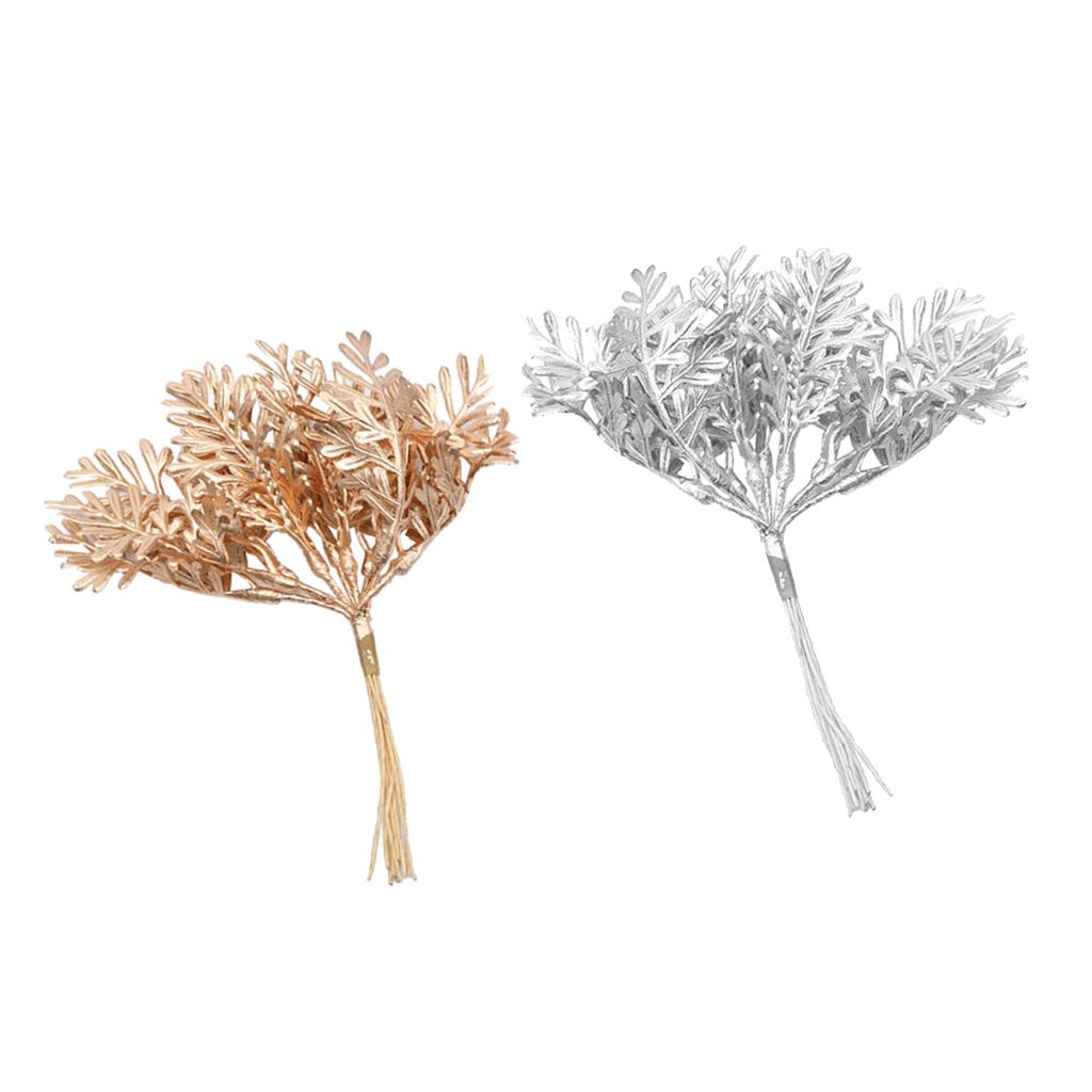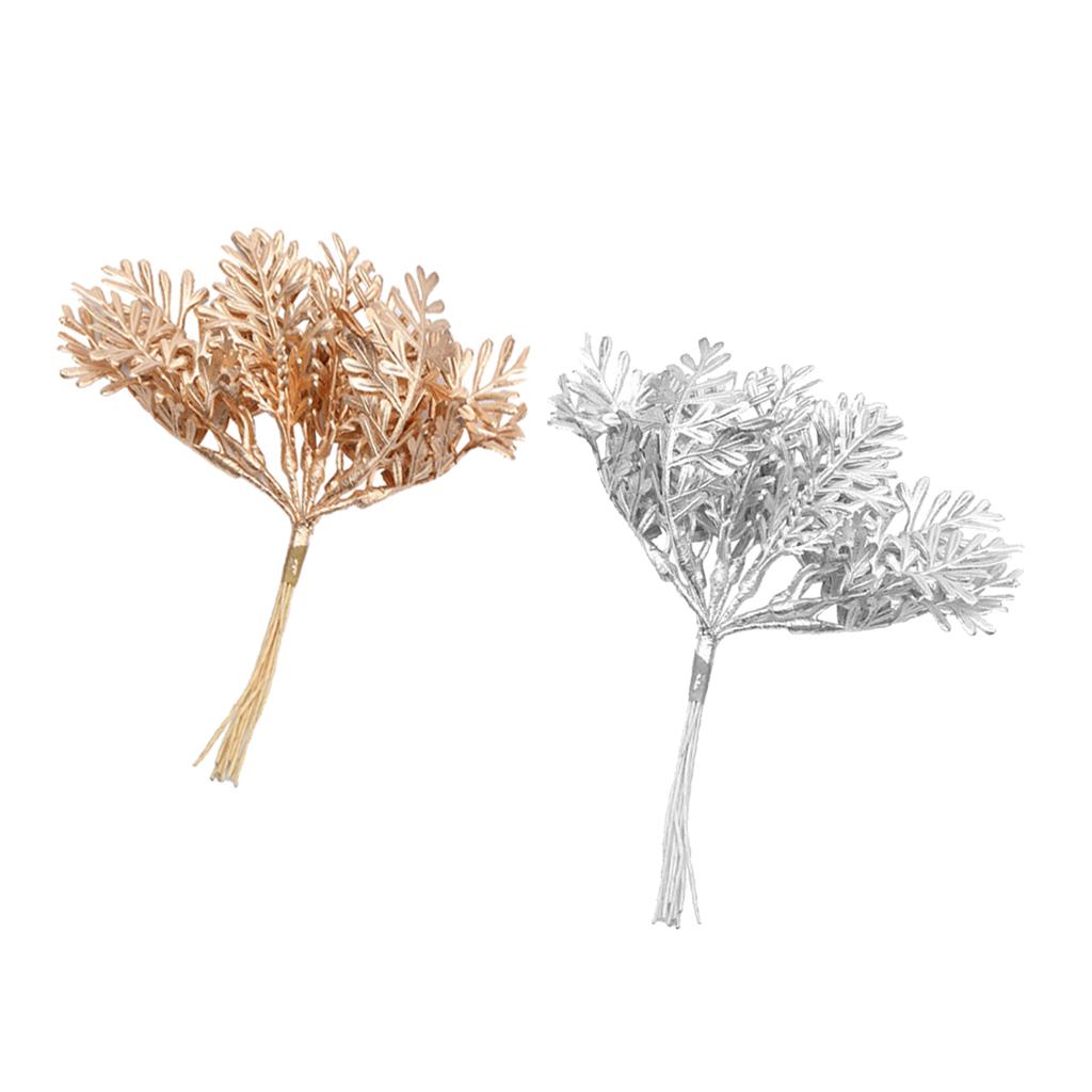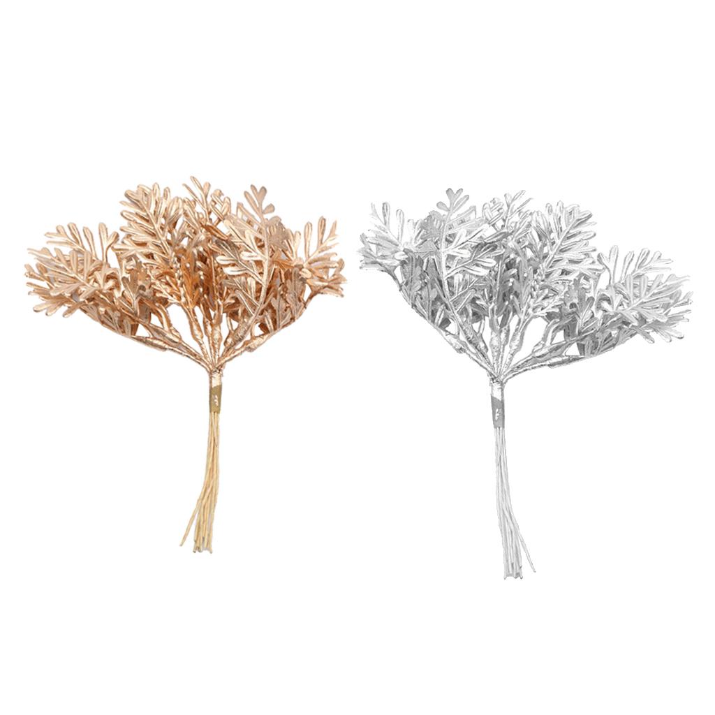 Maxbell Artificial Fake Leaves Bunch DIY Foliage Leaf for Home Decor Gold and Silver