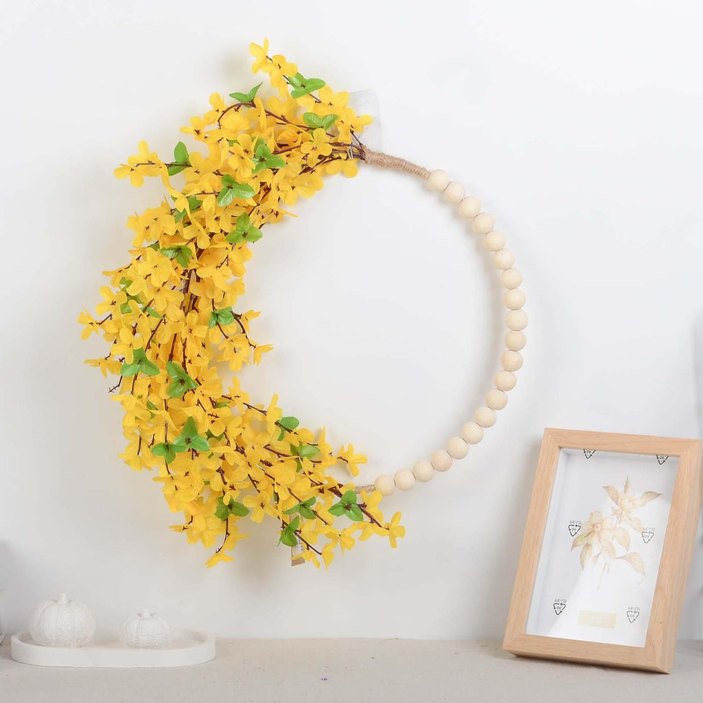 Maxbell Artificial Flower Wreath Floral Wreaths Wood Beads Hoop for Wedding Decor