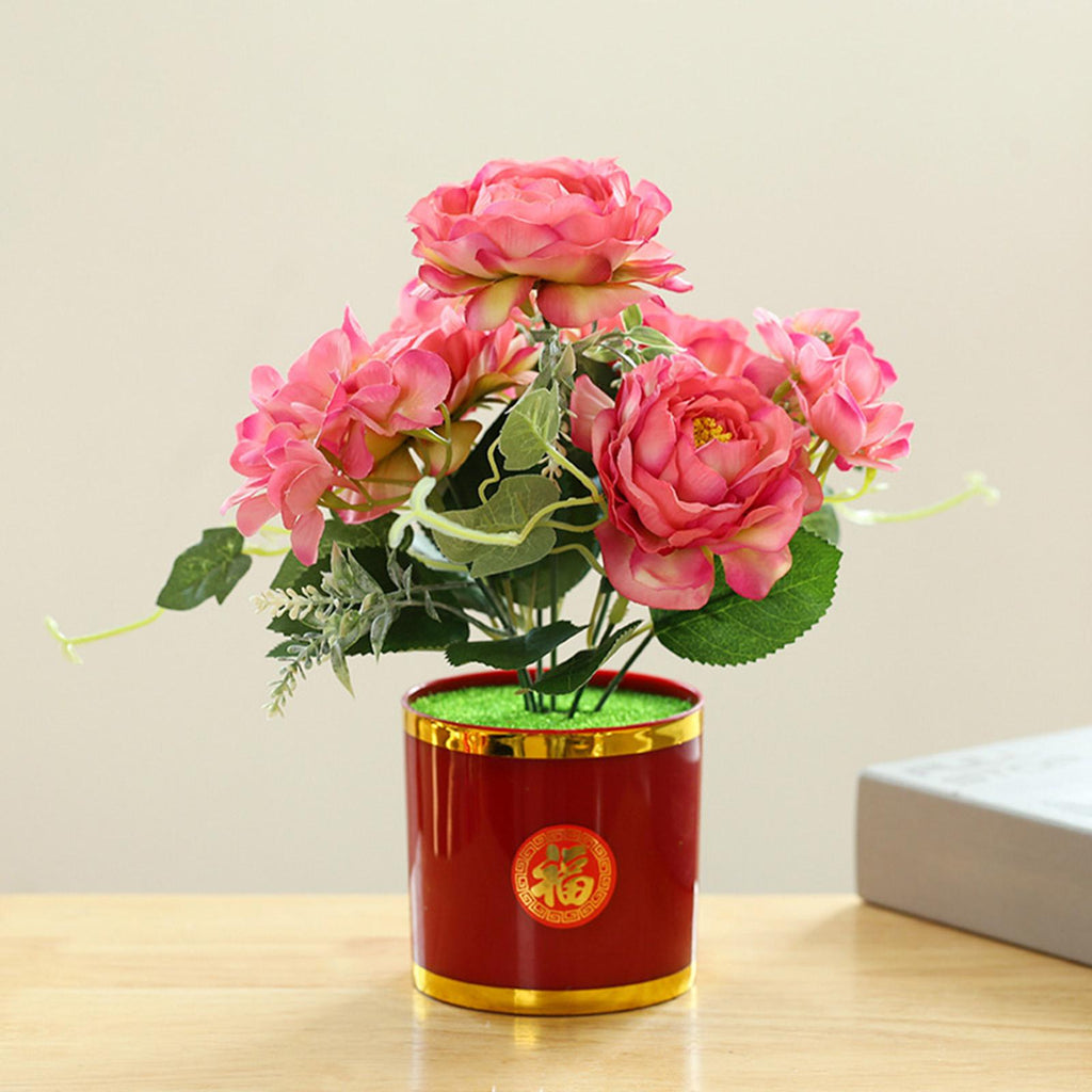 Maxbell Artificial Flowers in Pot Simulation Flower Bonsai Bouquet for Home Decor Pink