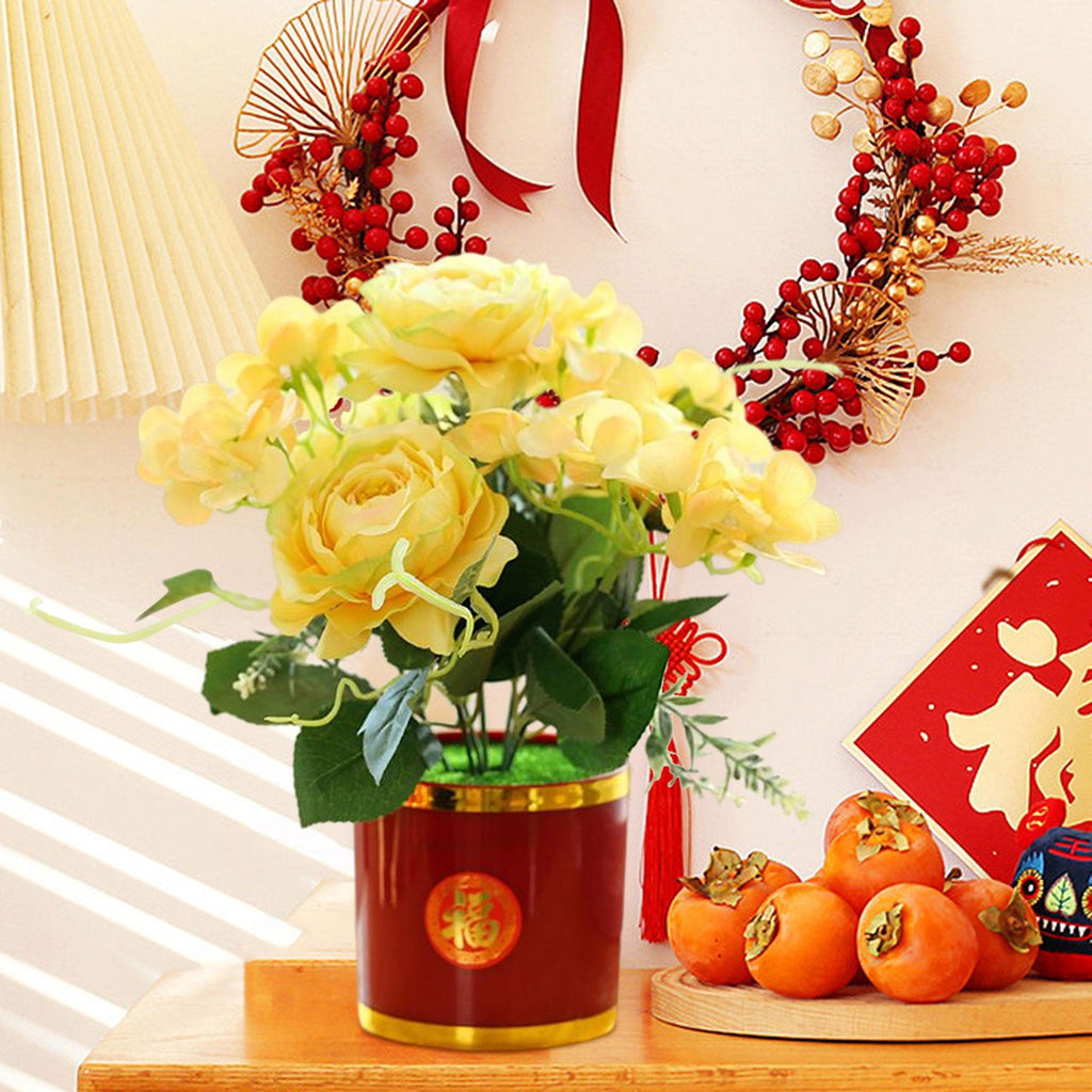 Maxbell Artificial Flowers in Pot Simulation Flower Bonsai Bouquet for Home Decor Yellow
