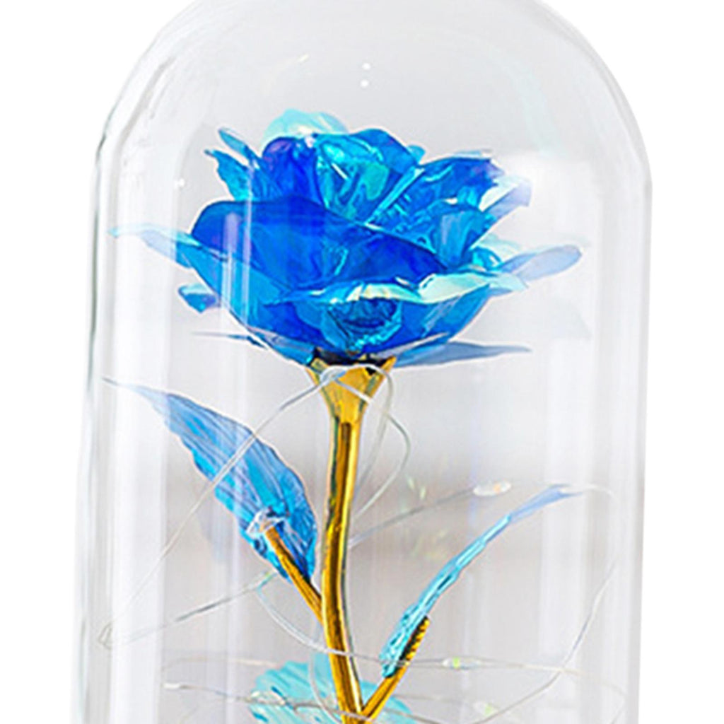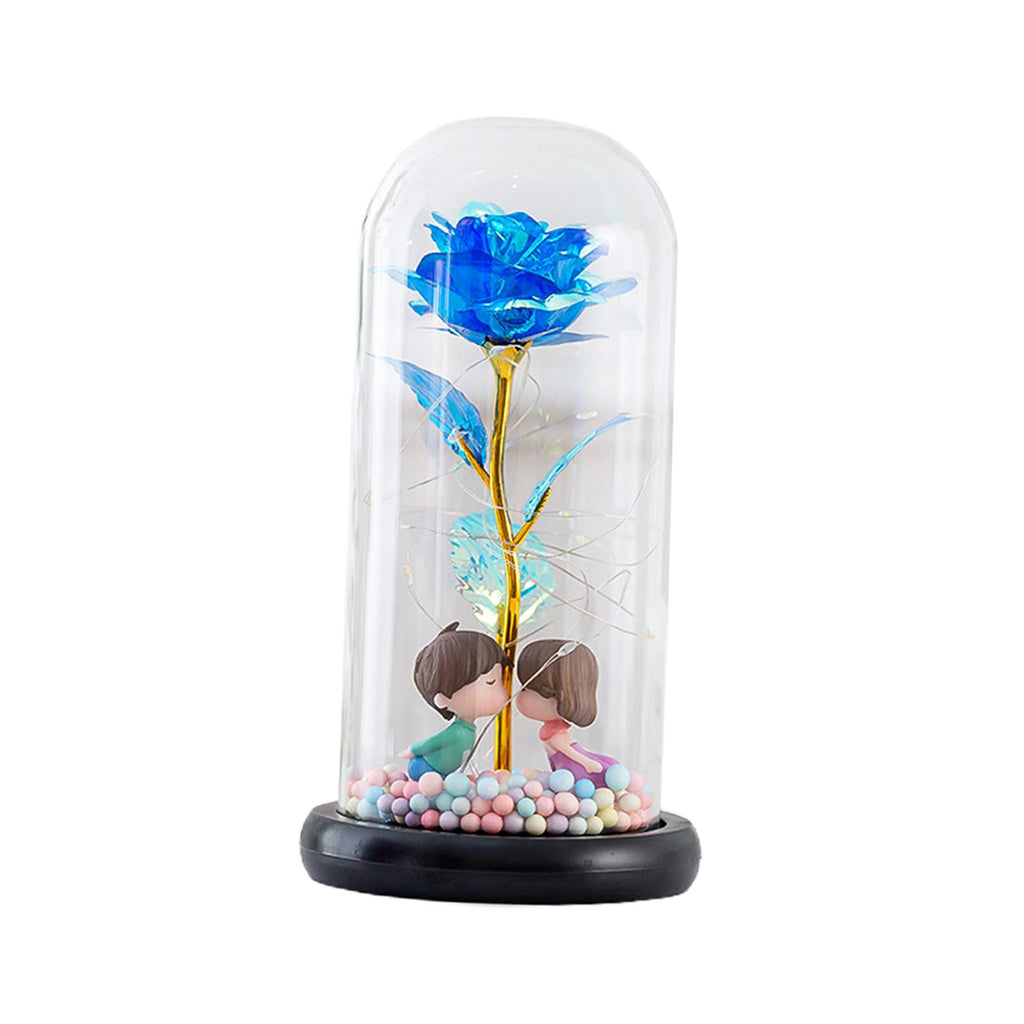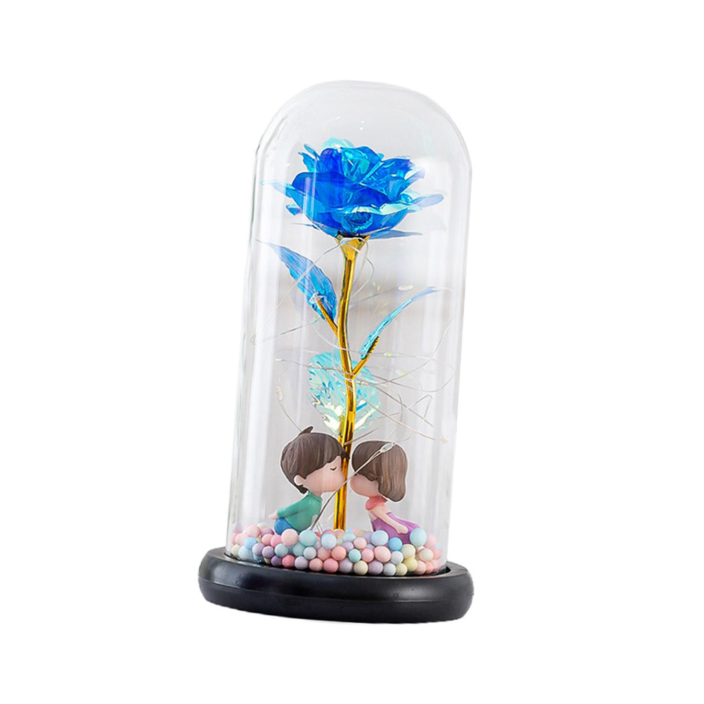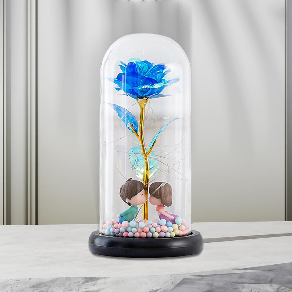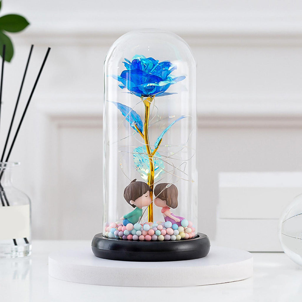 Maxbell Maxbell Artificial Flowers Rose LED Lamp in A Glass Dome Bouquet for Home Decor Blue