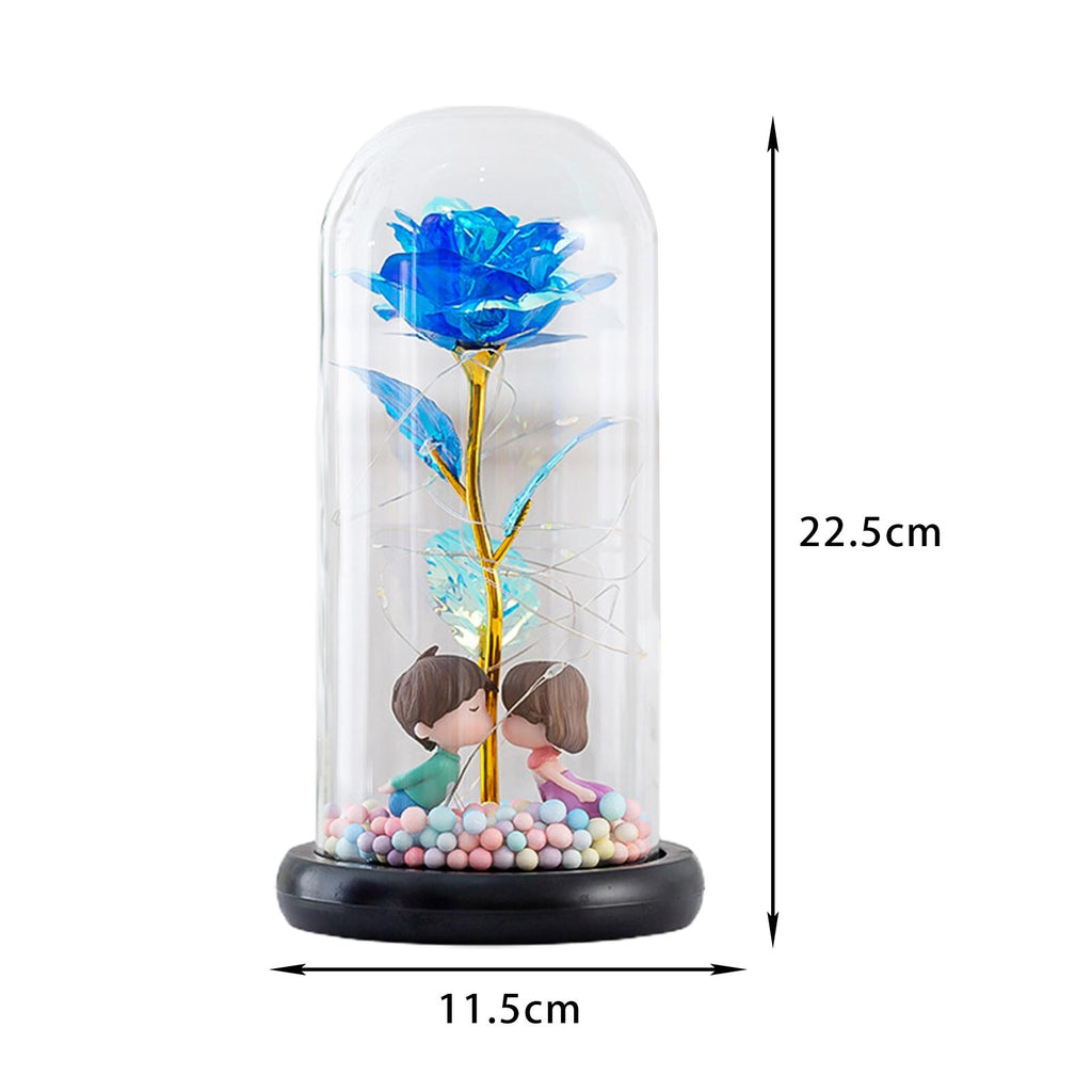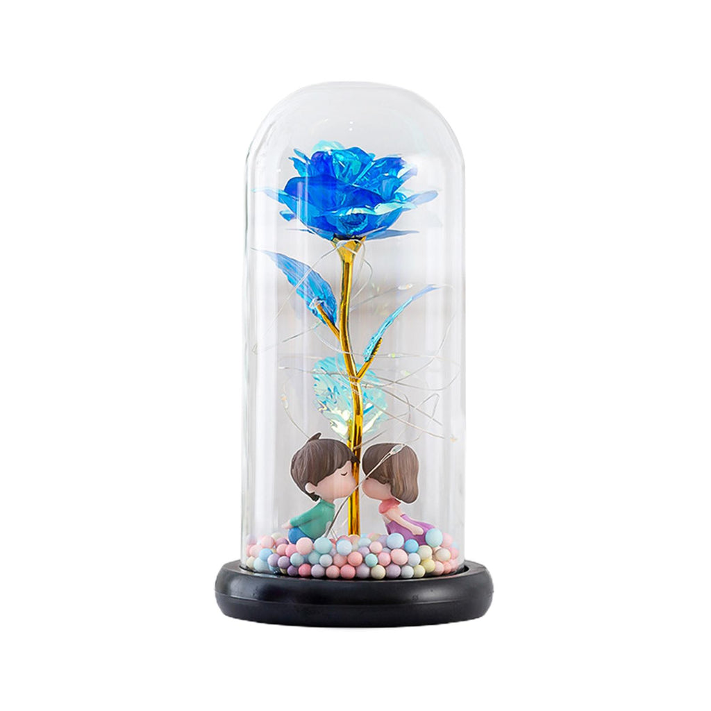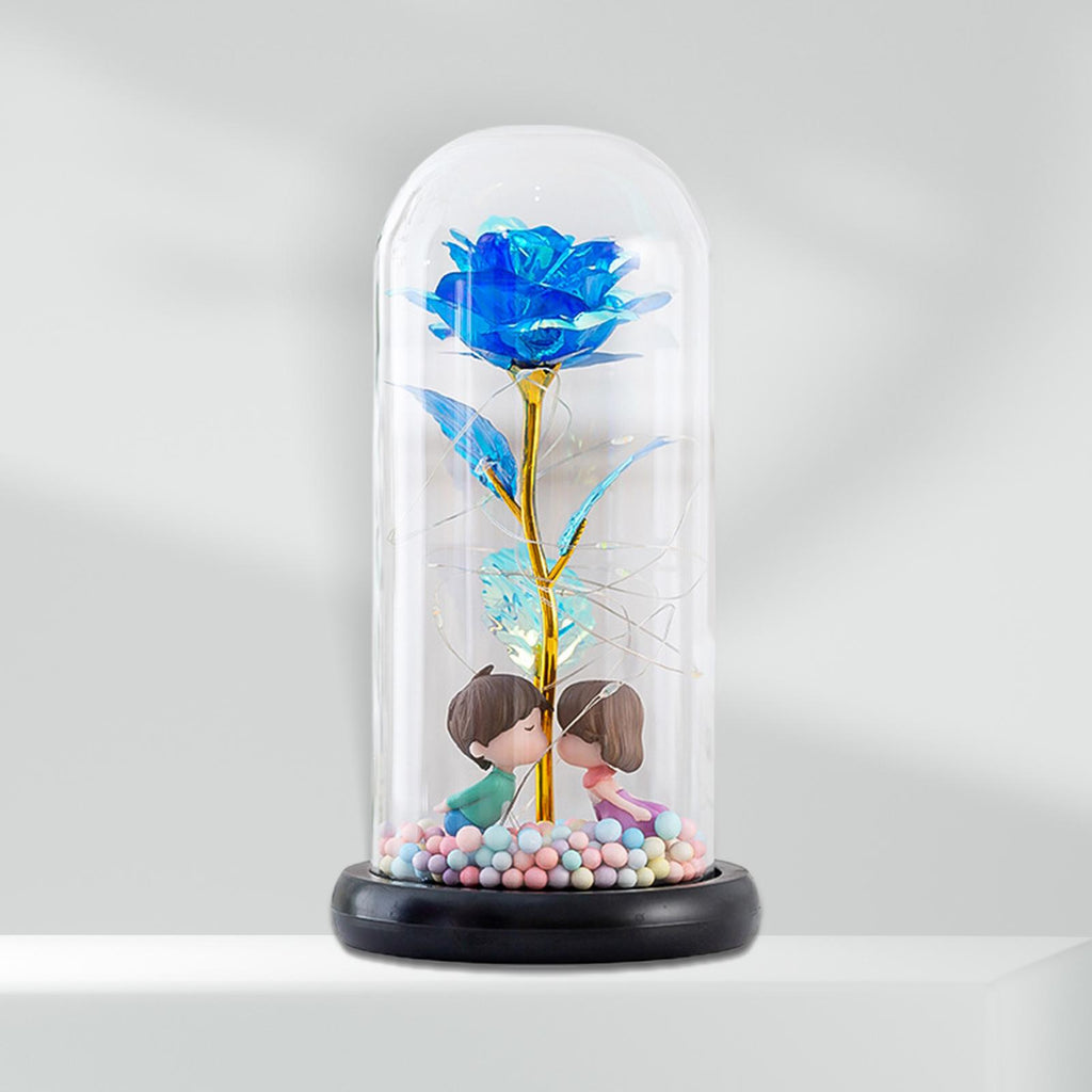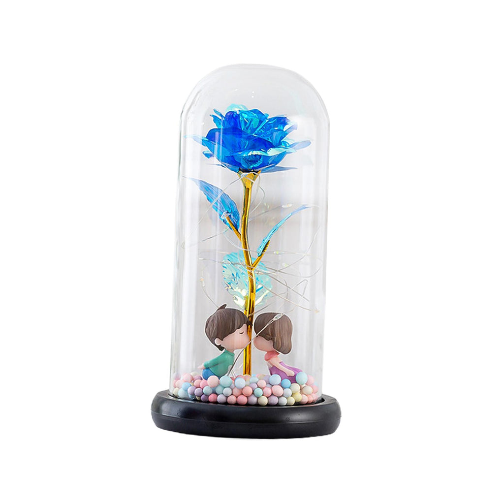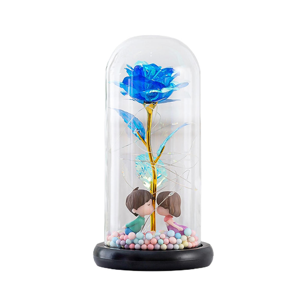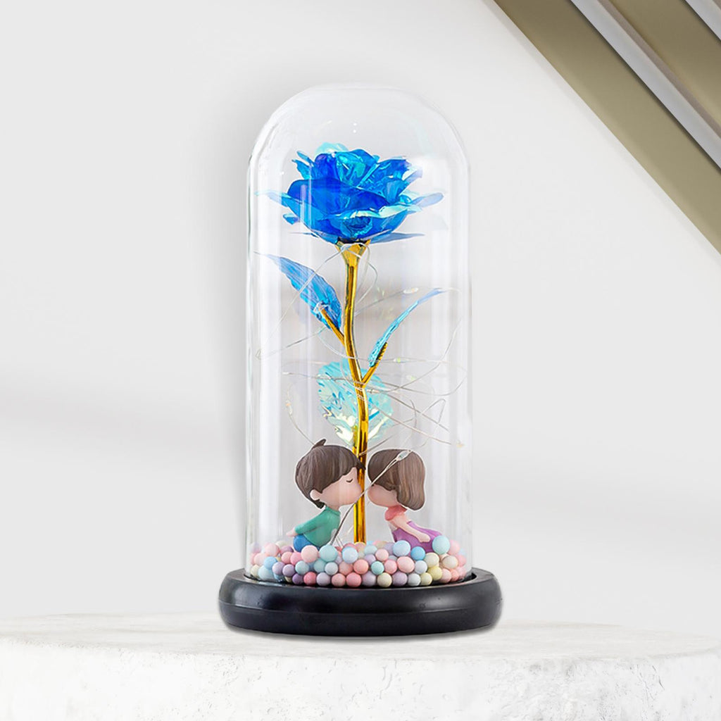 Maxbell Maxbell Artificial Flowers Rose LED Lamp in A Glass Dome Bouquet for Home Decor Blue