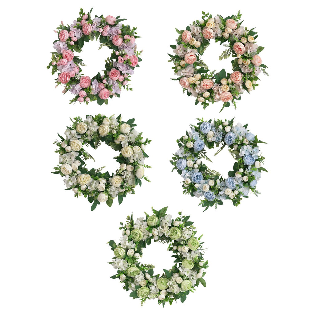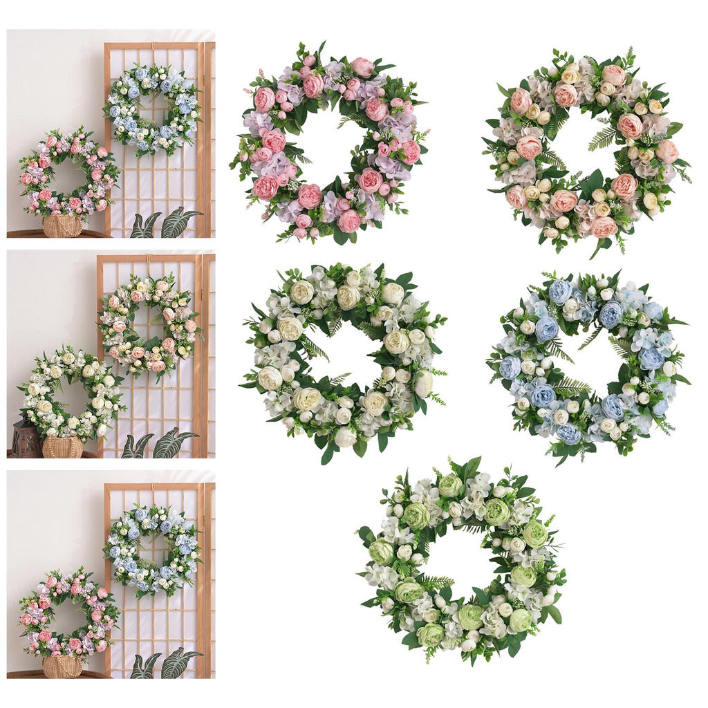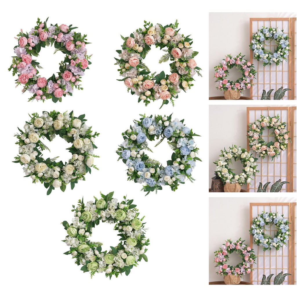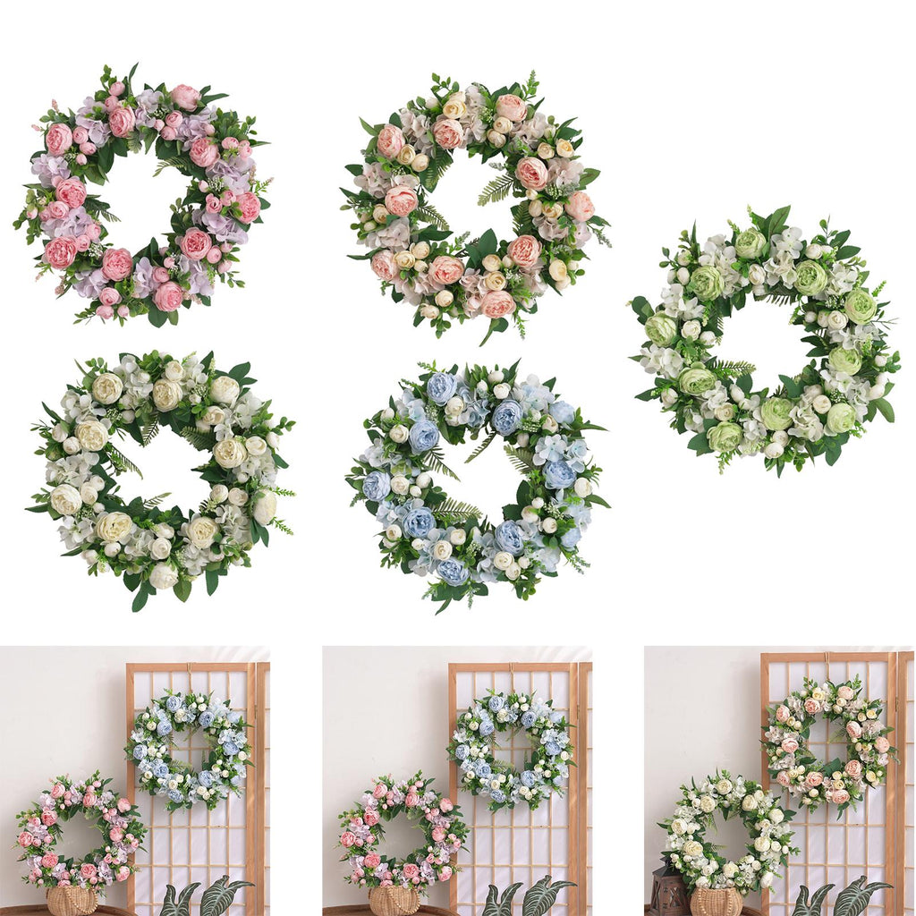 Material: The peony wreath is made of silk flowers and a rattan circle, decorated by a circle of artificial peonies, small flowers, and green leaves, great home decoration.