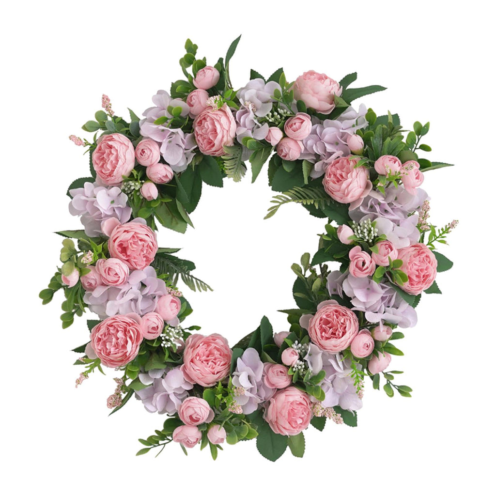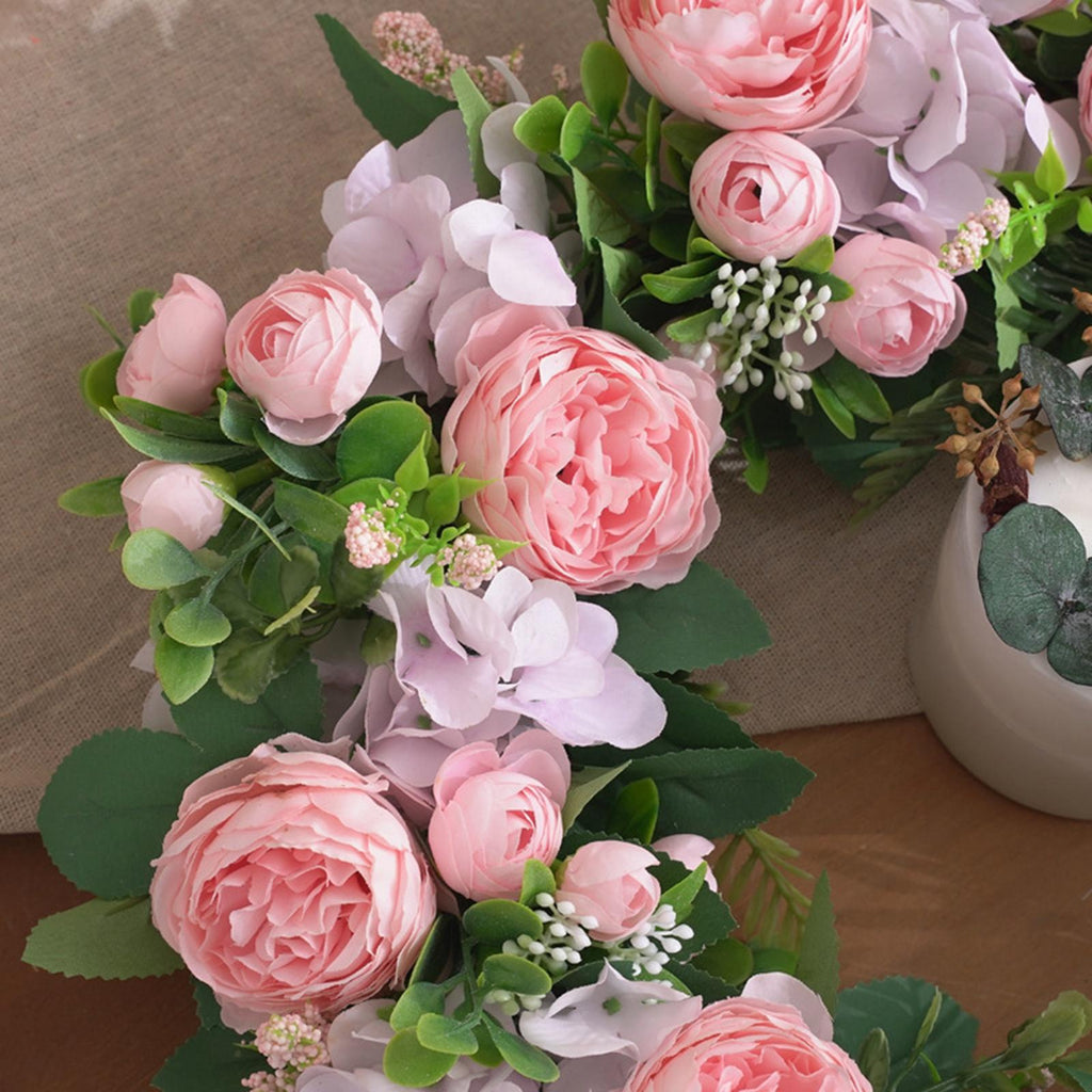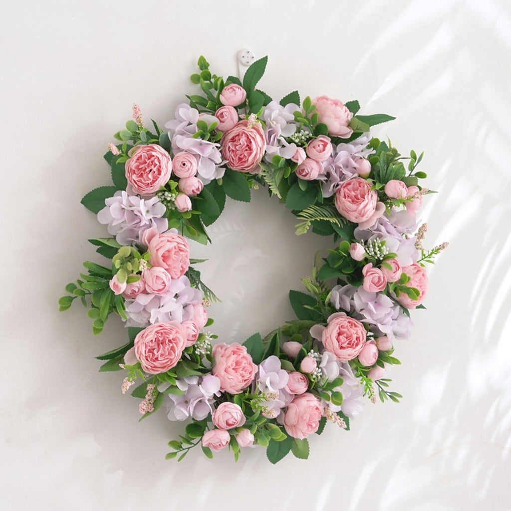Maxbell Artificial Peony Flower Wreath Floral Wreath for Festival Wedding Decoration Pink Purple