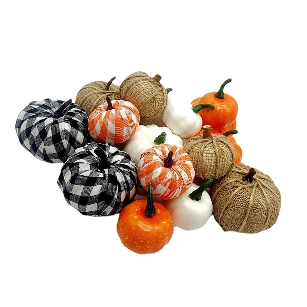 Maxbell Artificial Pumpkin Decorative Lifelike Craft for Table Thanksgiving Decor 16 With Plaid Plaid