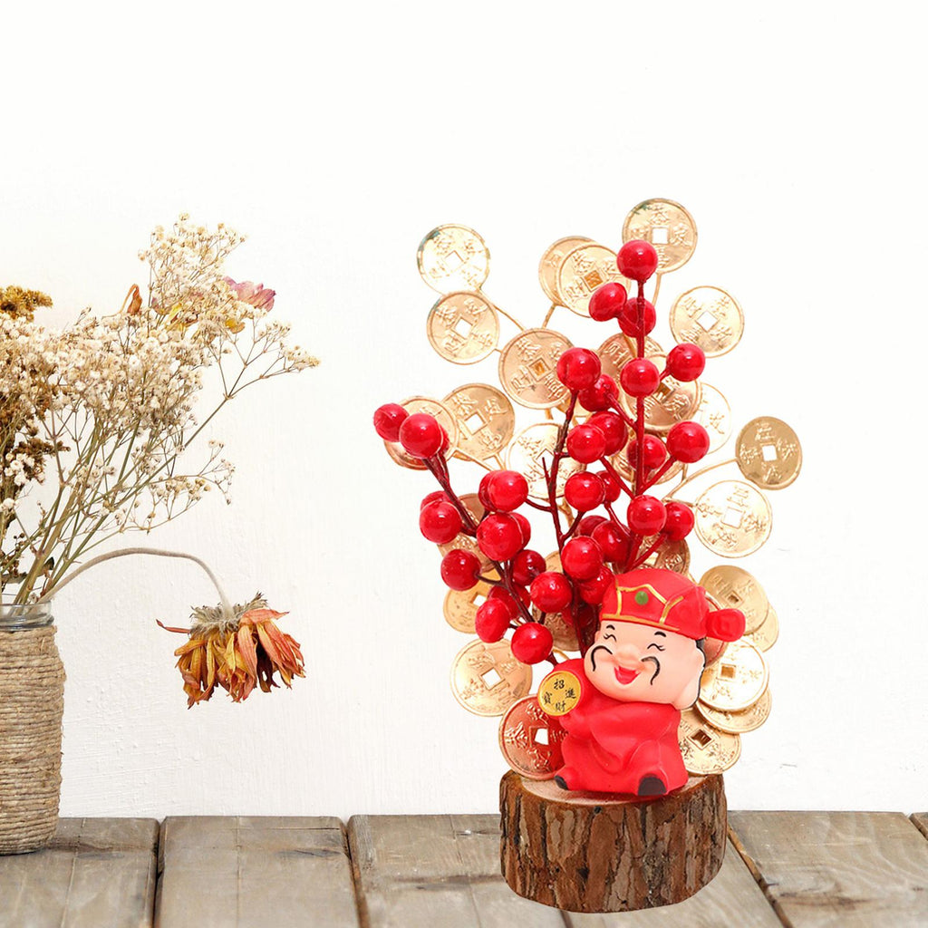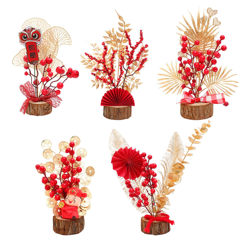 Maxbell Artificial Red Berry Branches Flower Ornament Decor for Living Room Autumn Wealth God 13cmx28cm