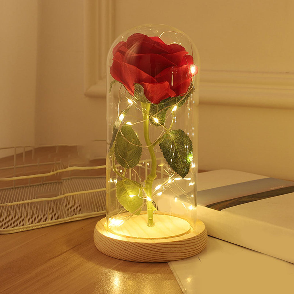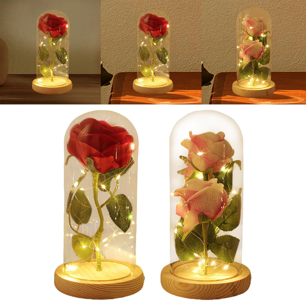 Maxbell Artificial Rose Flower with Glass Cover Decorative for Party Living Room