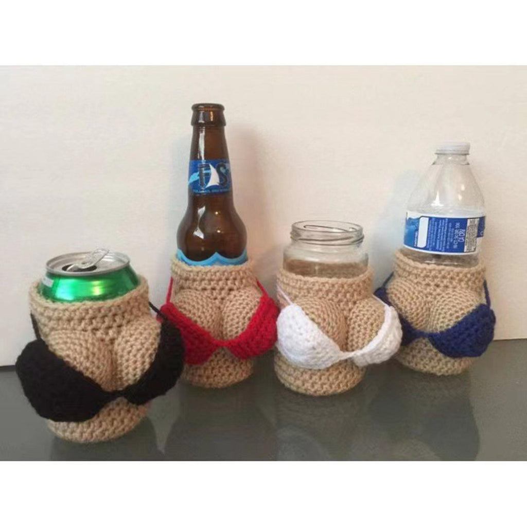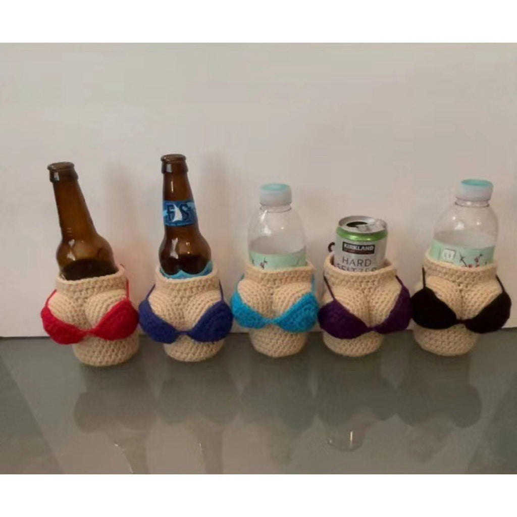 Maxbell Bikini Knitted Bottle Cover Crochet For Beer Bottles Sodas Decor Dark Blue