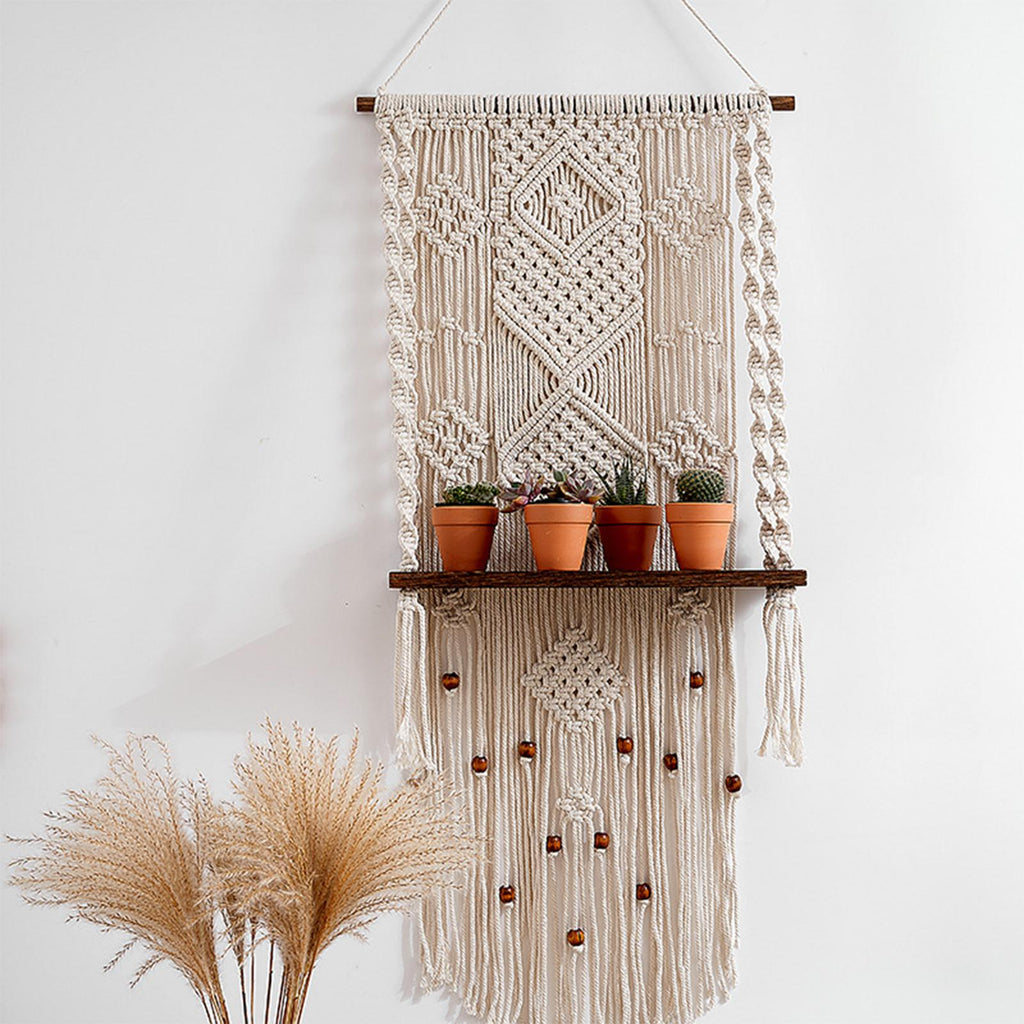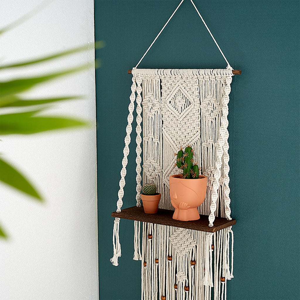 Maxbell Boho Wall Shelf Macrame Wall Decor Woven Rope Home Decor Bedroom Plant