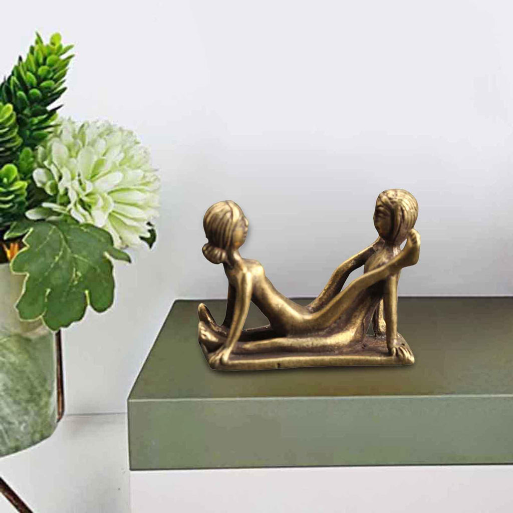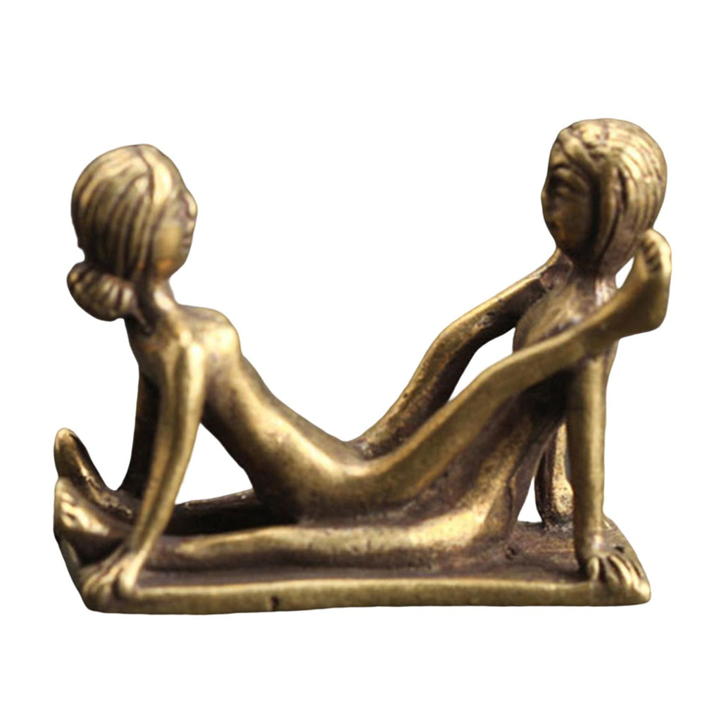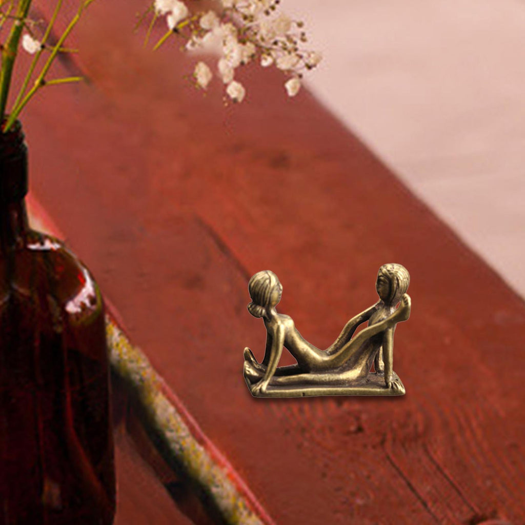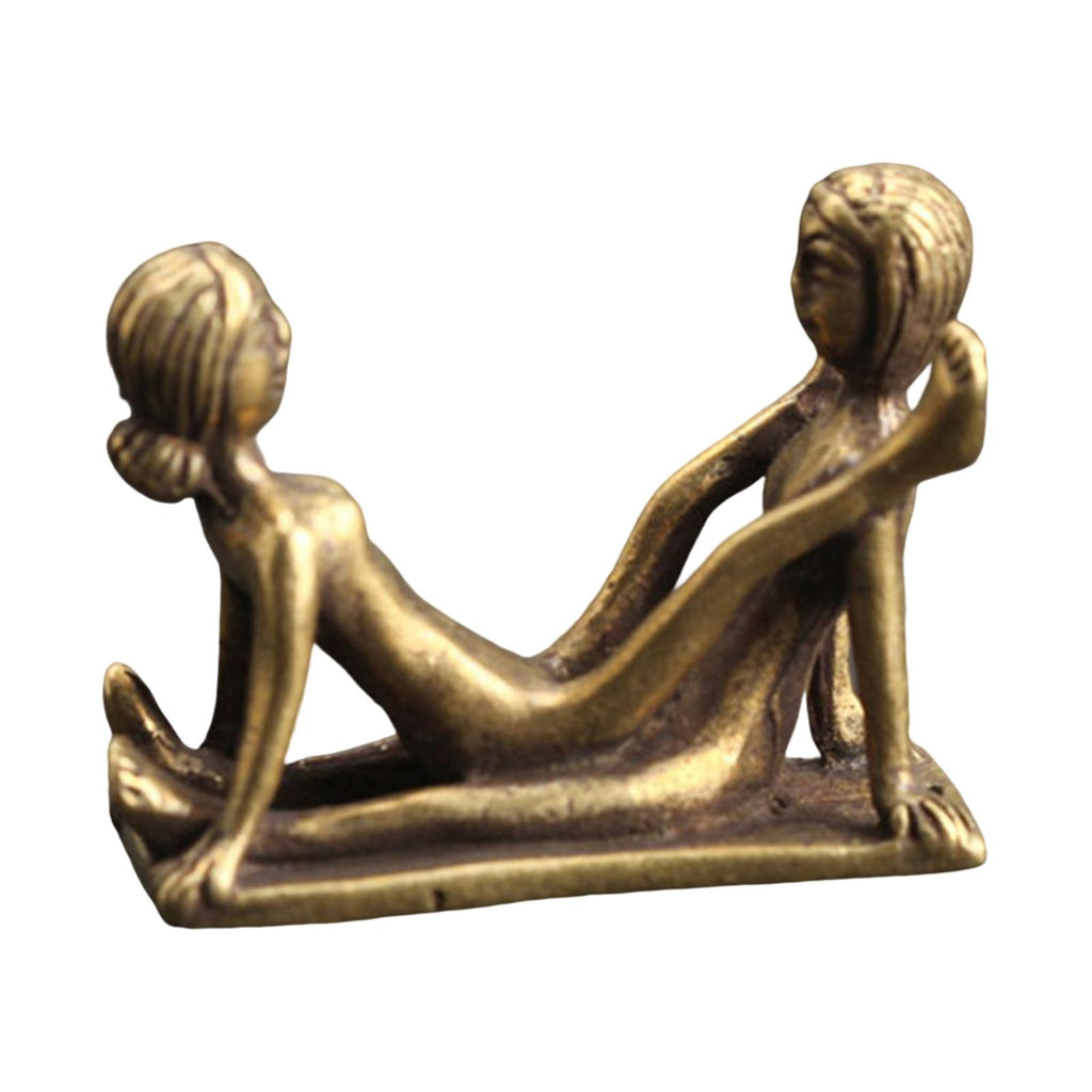 Maxbell Brass People Figurine Crafts Posture Figure Funny for Bedroom Decoration StyleC