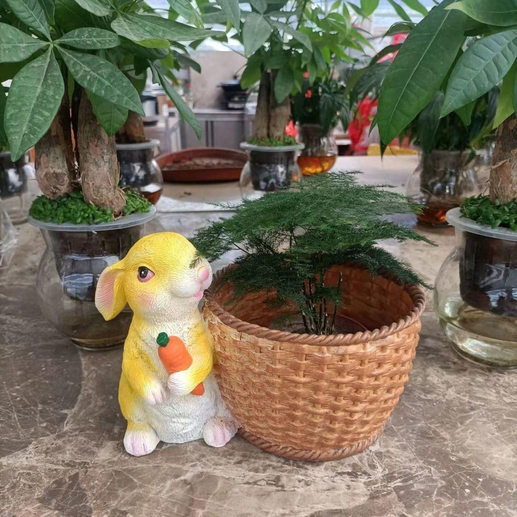 Vivid and cute design: The bunny holding the carrot stands the flower pot and looks lifelike.