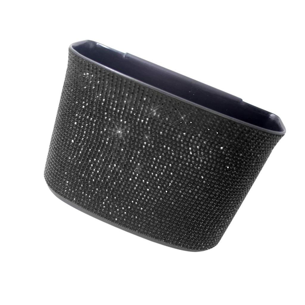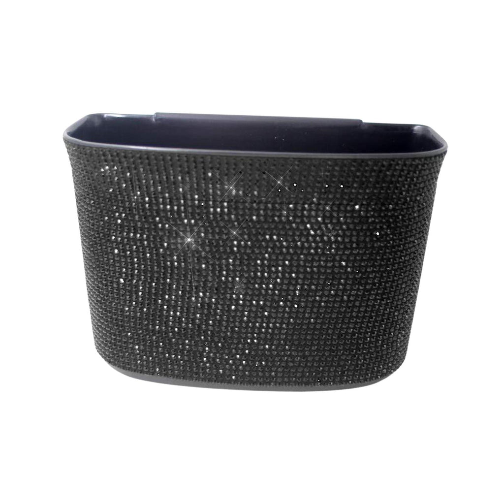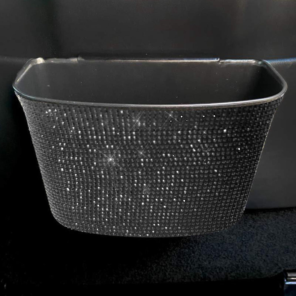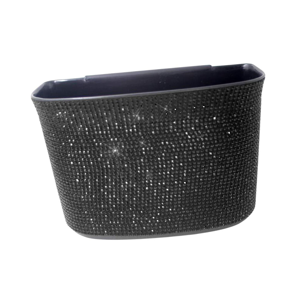 Maxbell Car Trash Can Hanging Vehicle Small Storoge Sundries Glitter Decoration Black Rhinestones