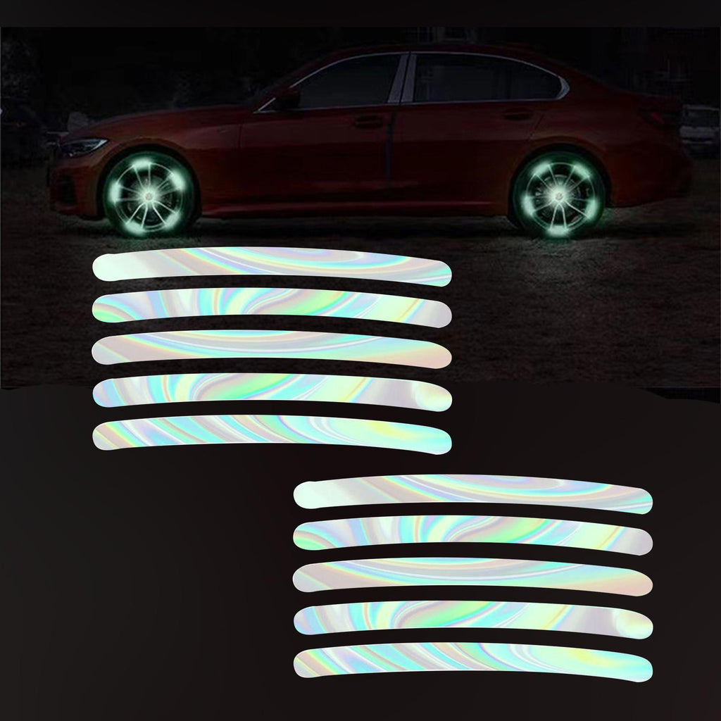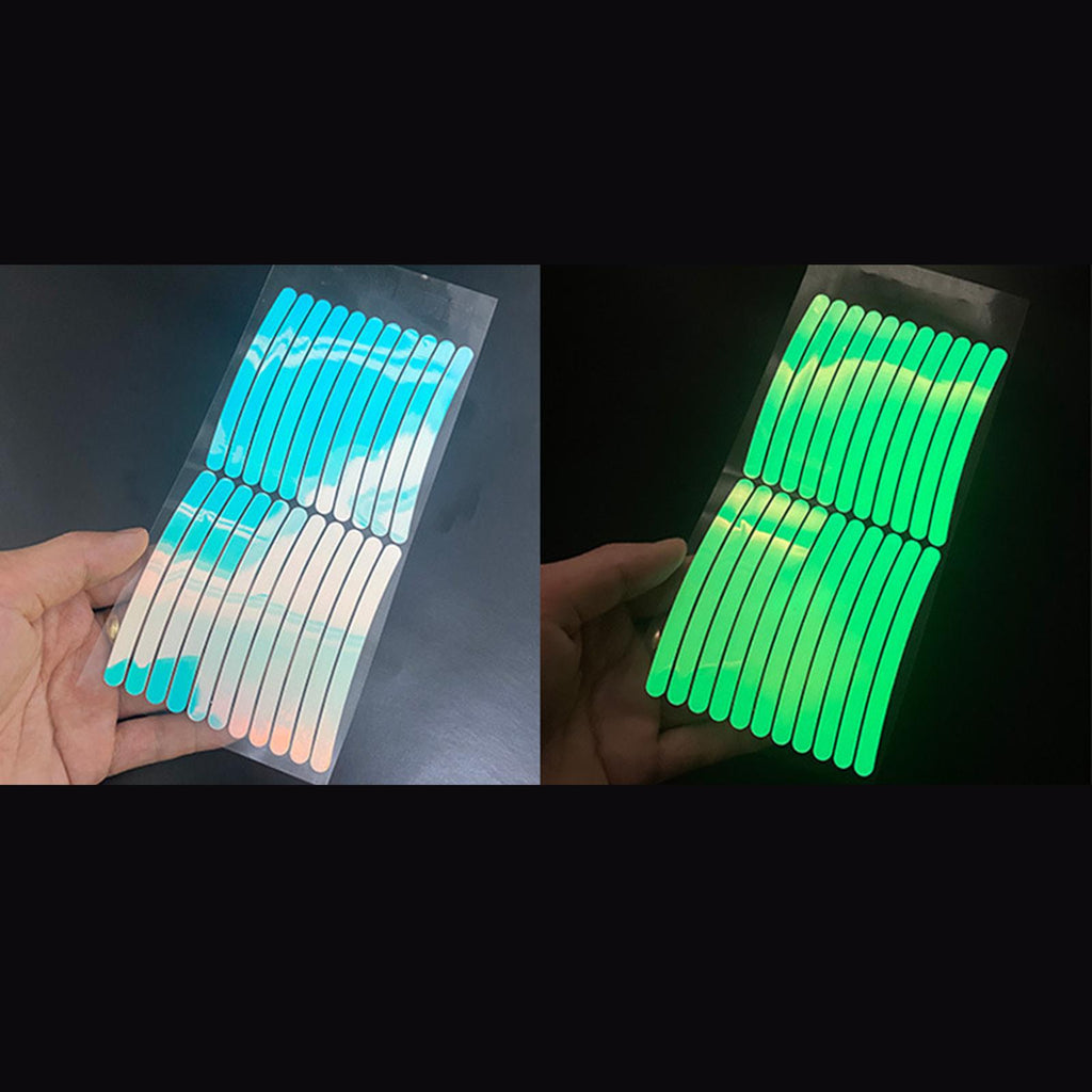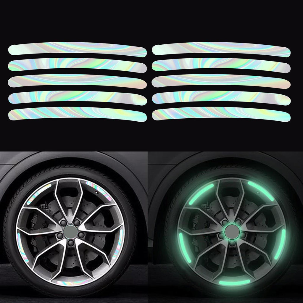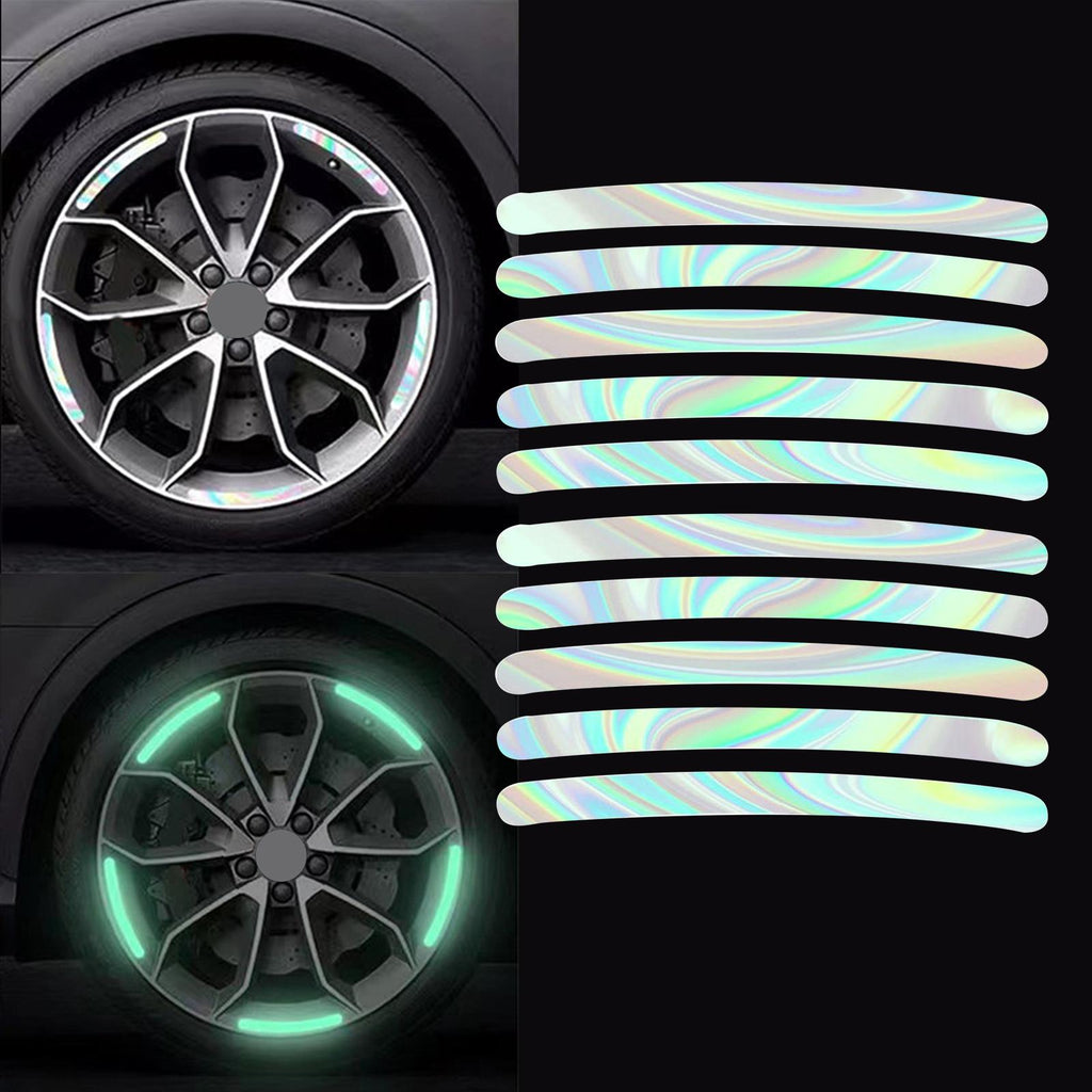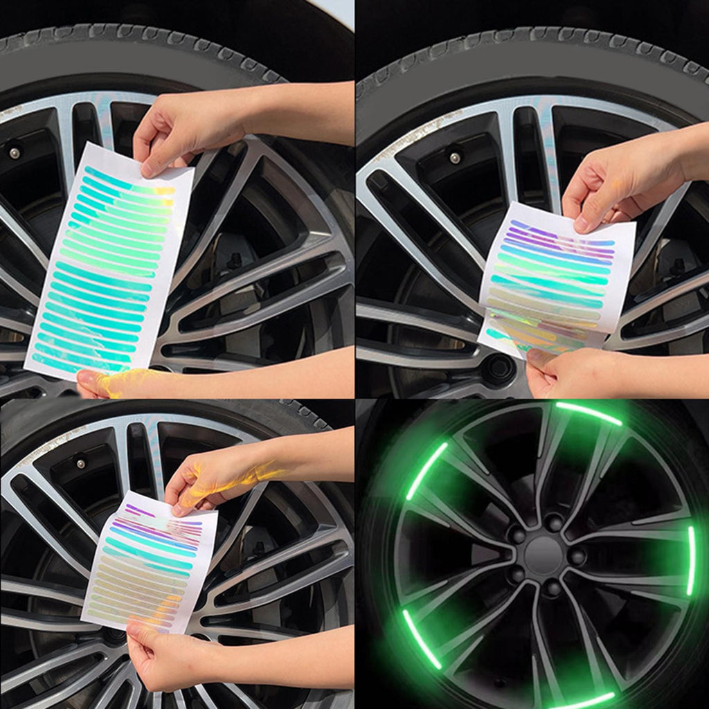 Wheel Hub reflective stickers: Daytime rainbow effect, Night fluorescent effect.reflective stickers reflect light to the driver, attracting attention and reminding them to keep their distance, improving driving safety.