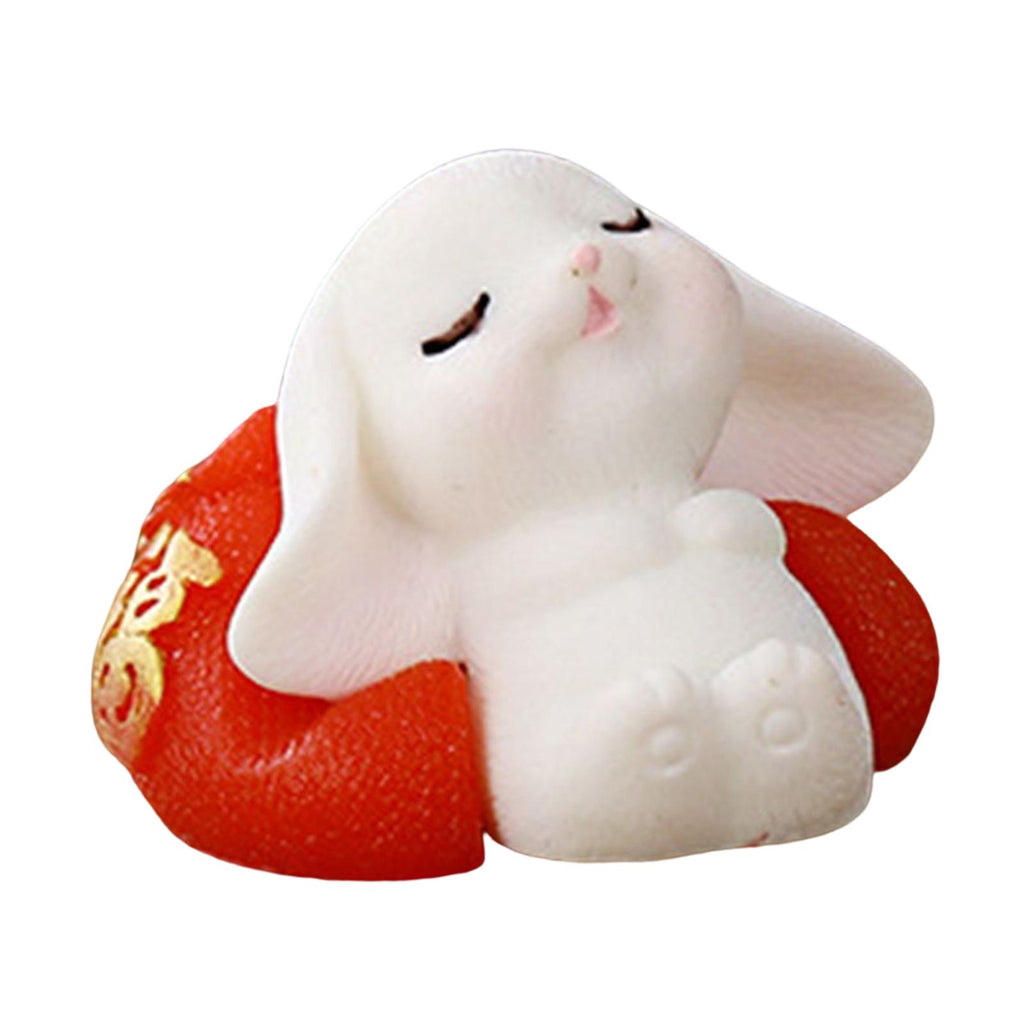 Maxbell Cartoon Rabbit Statue Animal Model Desk Ornament for Office Home Decor 2.6cmx3.7cm