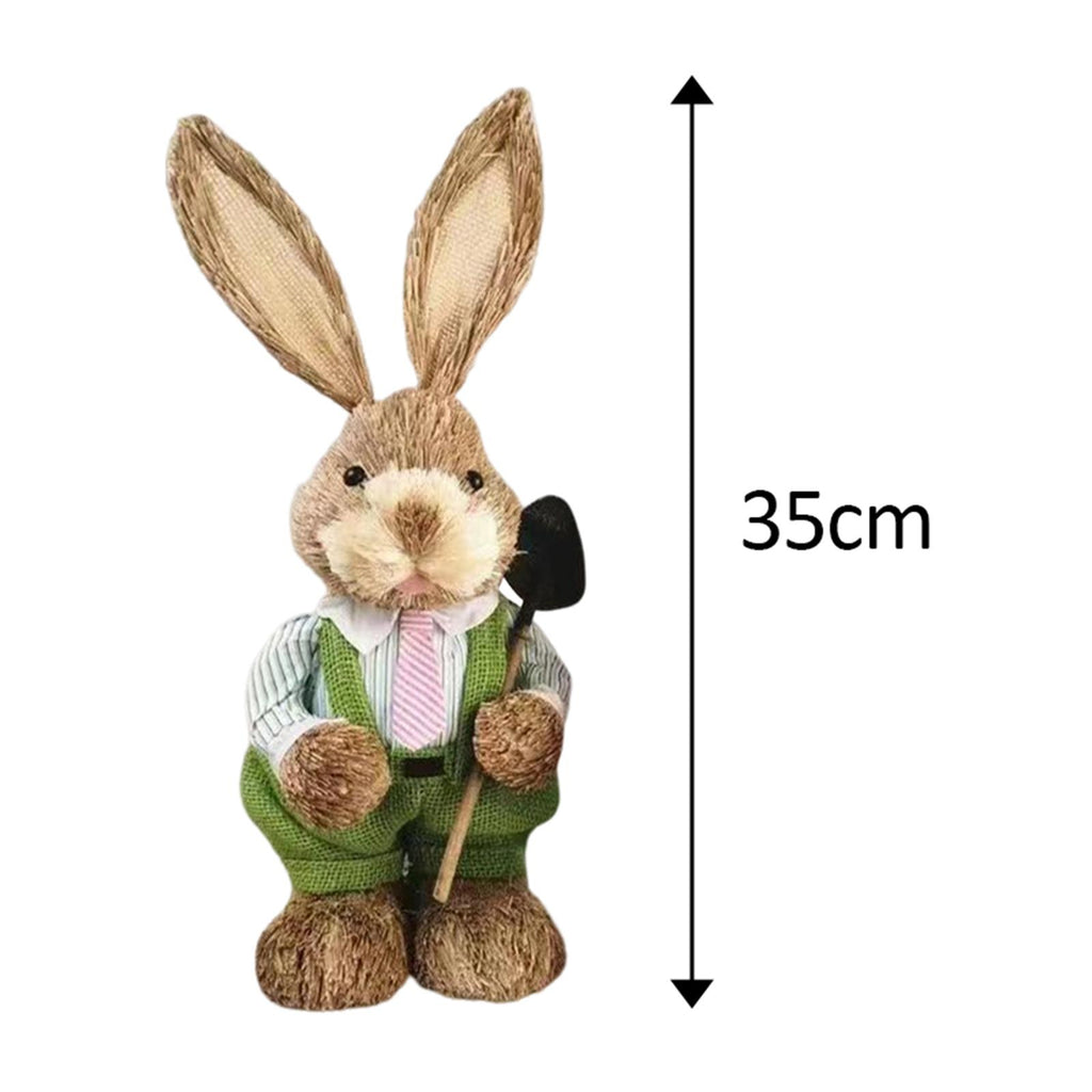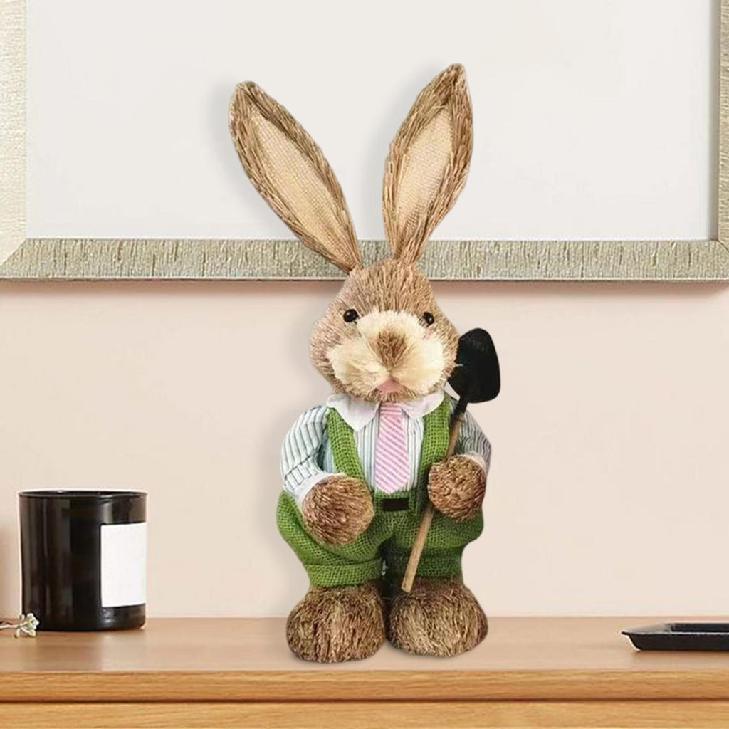 Material: Made of straw material and cloth, the straw woven rabbit ornament is beautifully designed and lasts for a long time to decorate your home.