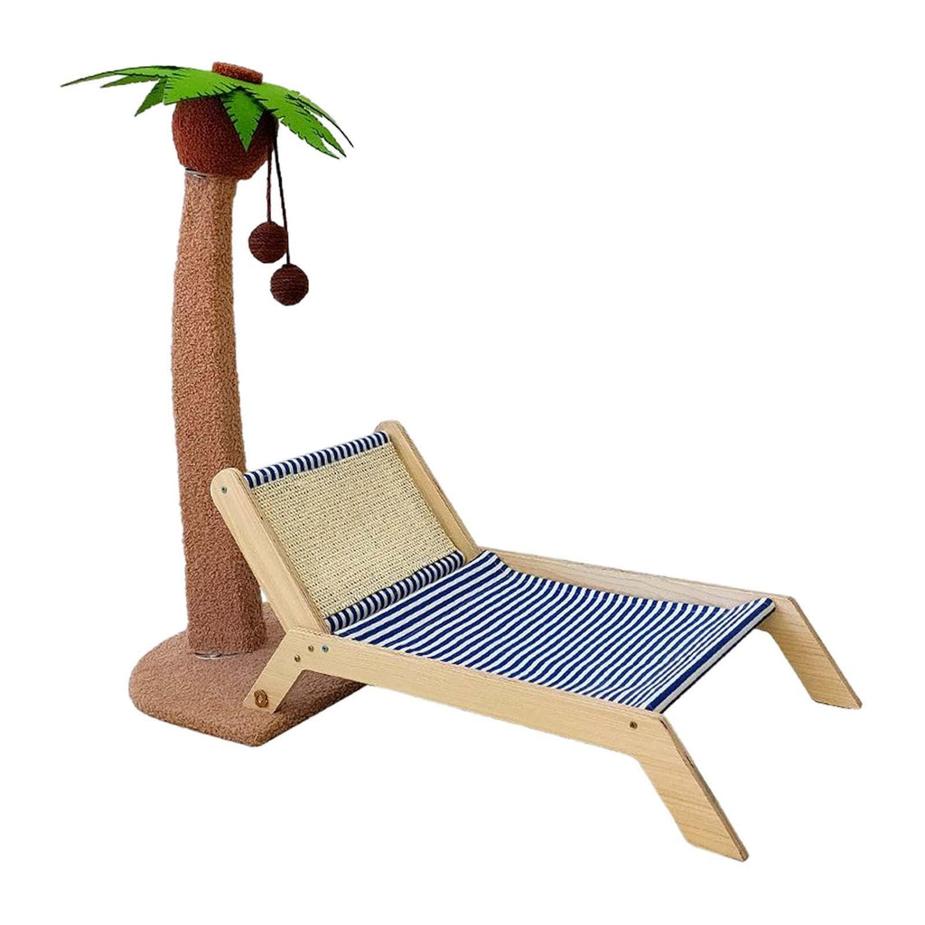 SUMMER beach lounger DESIGN: Lounge for cat climb up and down with interactive ball toys, built in squeaky ball, and Grab post combine to attract cats to play and grab, natural sisal is suitable for cats to grab, effectively preventing cats from grabbing furniture.