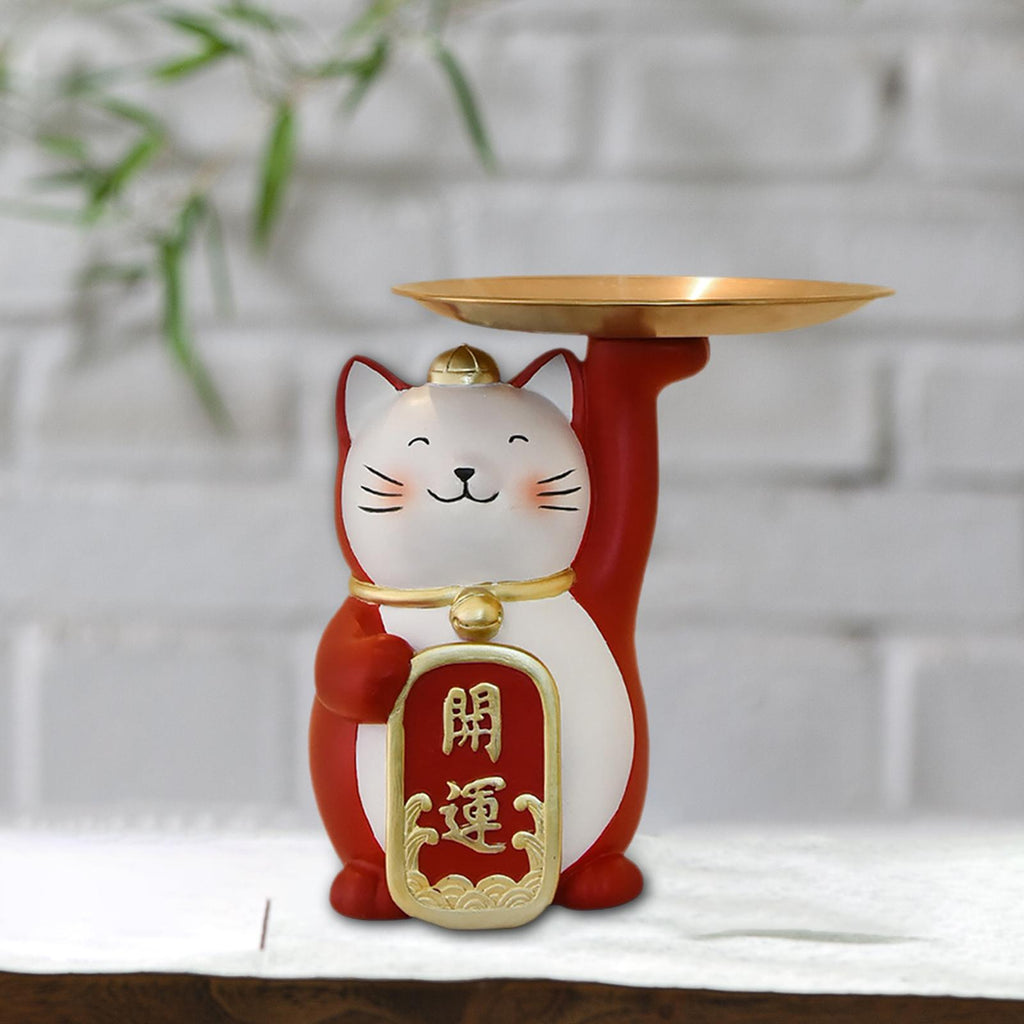 Maxbell Maxbell Cat Statue with Tray Table Ornament Art Figurine for Decoration Gift Cabinet