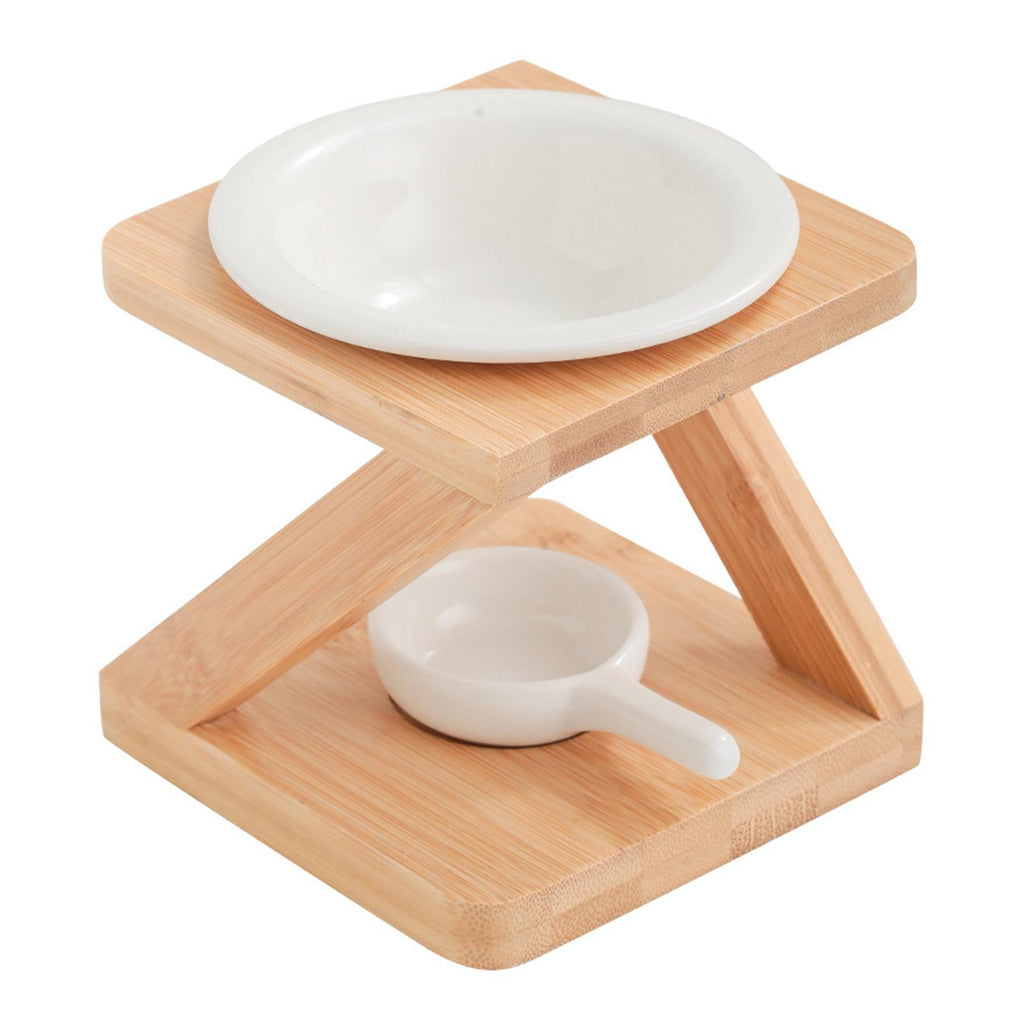 MATERIAL: The tealight oil burner for melting and essential oil is made for bamboo wood with ceramic bowl. The premium bamboo is sturdy and durable. The wooden frame of natural color with exquisite finishing nicely blends into all types of home decor.