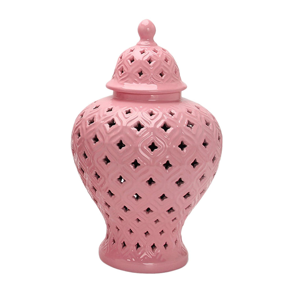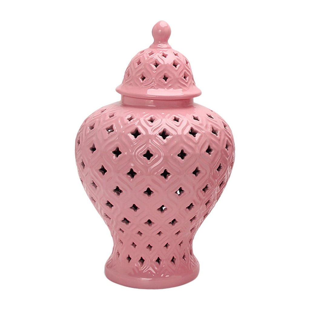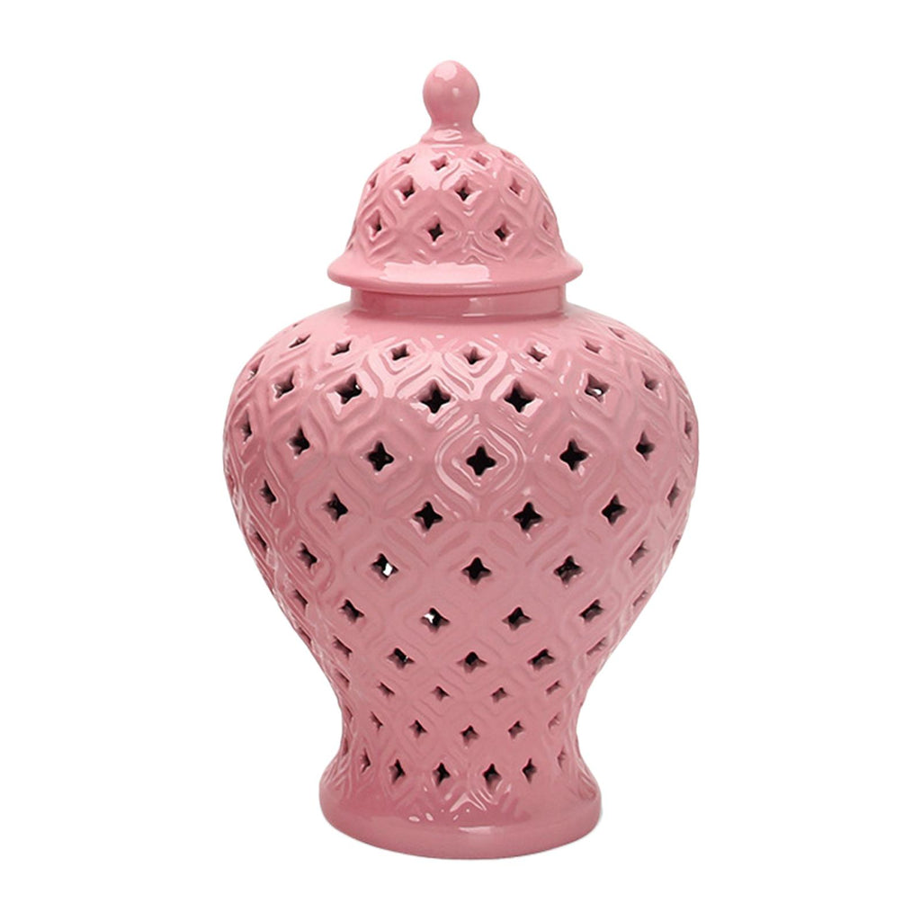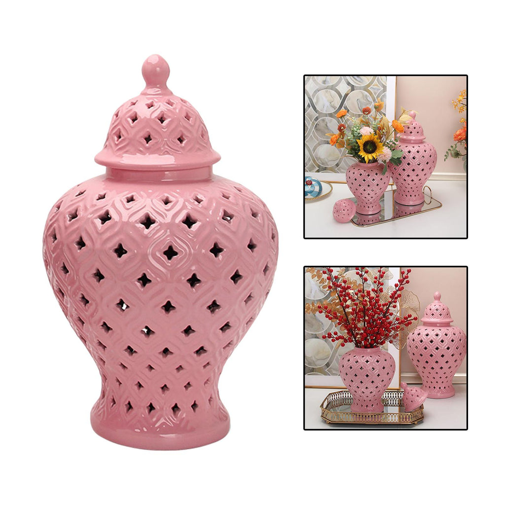 Maxbell Ceramic Ginger Jar Flower Vase Decorative Temple Jar Handicraft Hollow Out