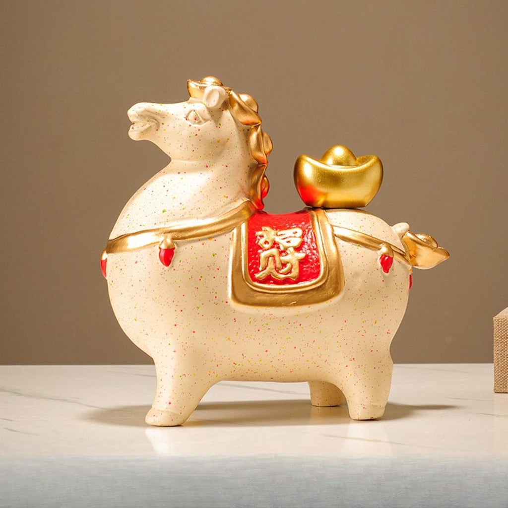 Ceramic Horse Statue Creative Feng Shui Decor for Bookshelf Bedroom Entrance Wealth