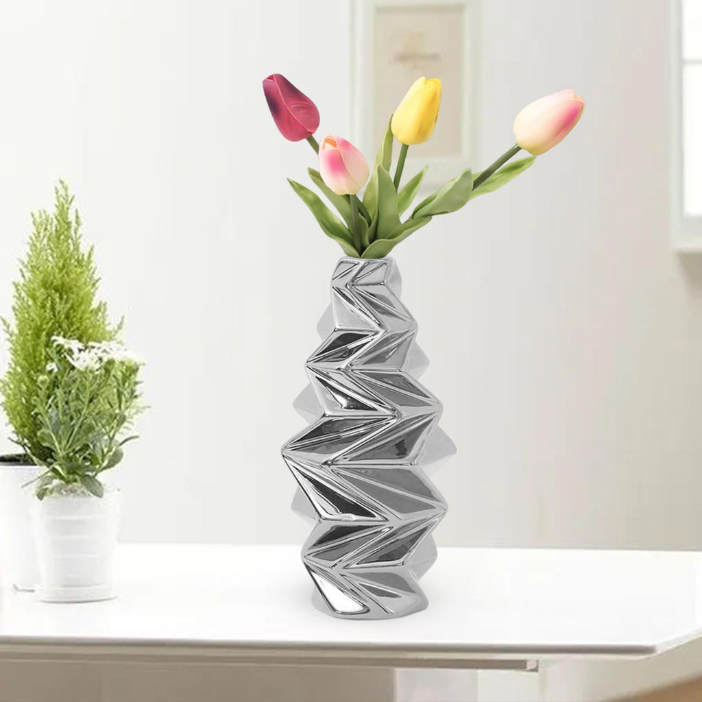 Maxbell Ceramic Vase Decorative Vases Dried Flower Container for Dining Room Decor S Silver