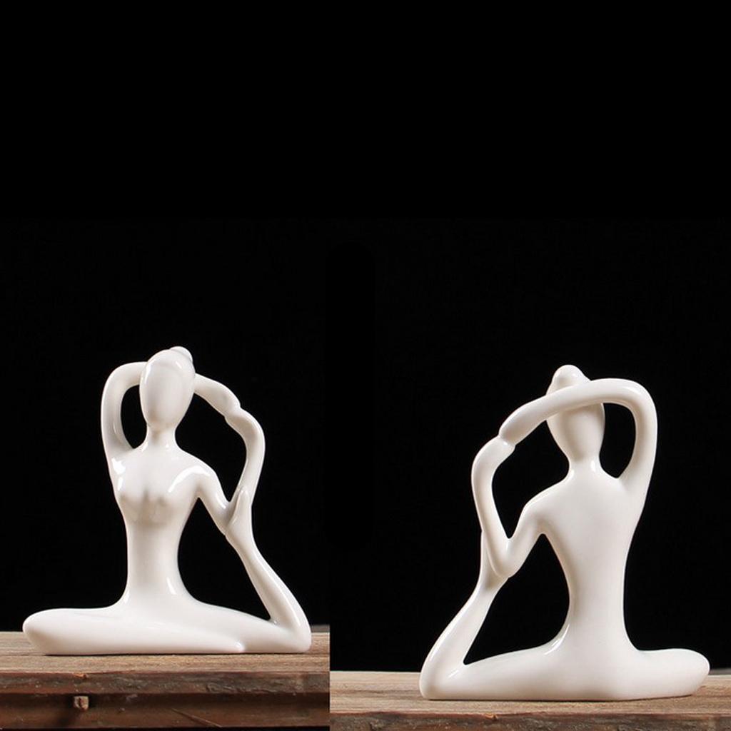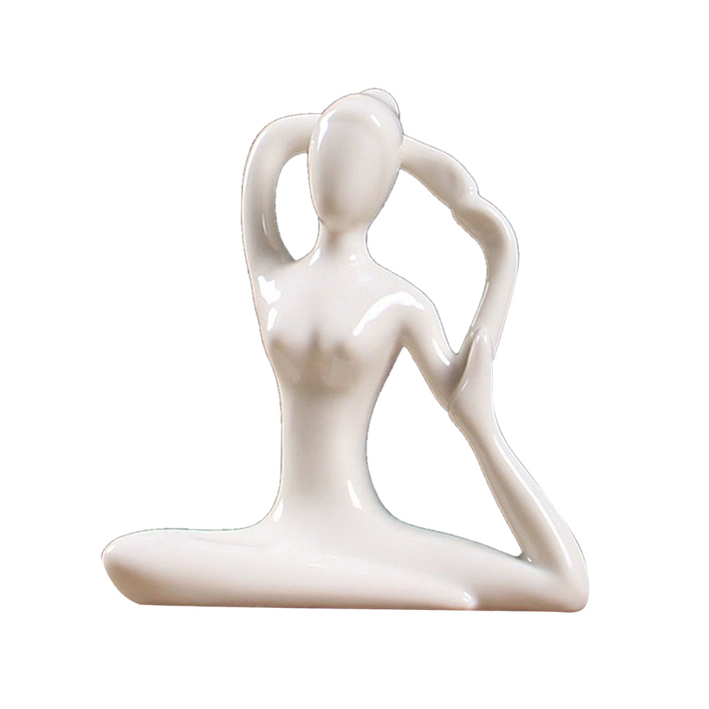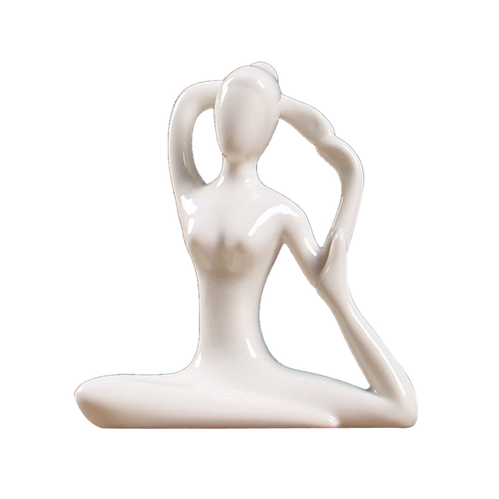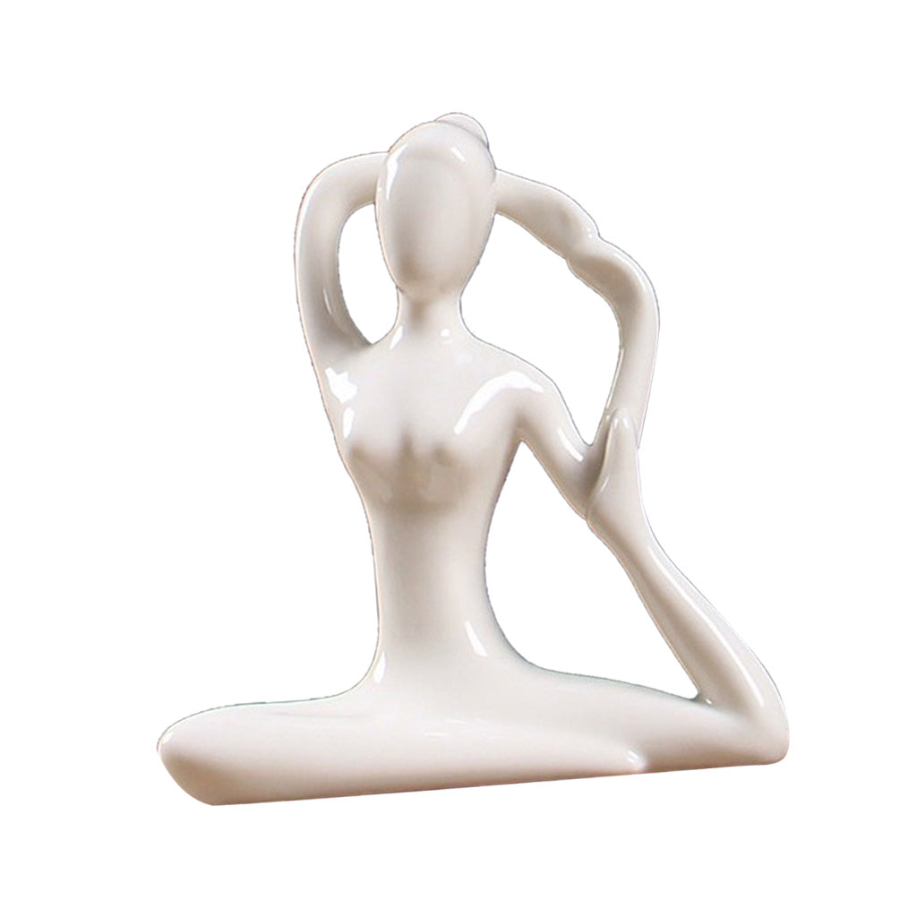 Maxbell Ceramic Yoga Figure Ornament Statue Sculpture Zen Garden Home Desk Decor 10x3.5x11cm