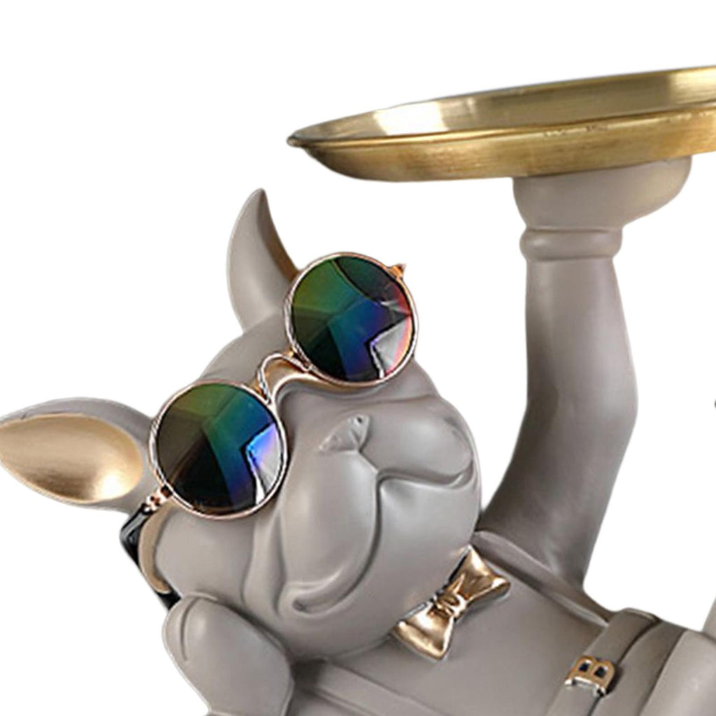 Design: The bulldog statue with glasses is more than just a creative handicraft. It is a chic ornament, and it can accommodate small objects, beautiful and practical.