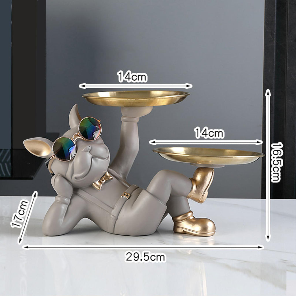 Maxbell Chic Resin French Bulldog Statue 2 Metal Trays with Glasses Home Decor Beige