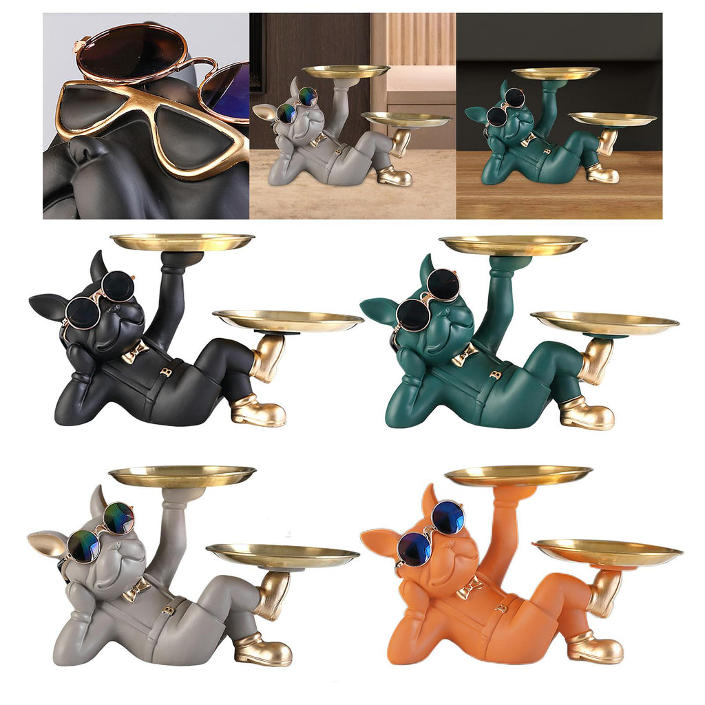 Design: The bulldog statue with glasses is more than just a creative handicraft. It is a chic ornament, and it can accommodate small objects, beautiful and practical.