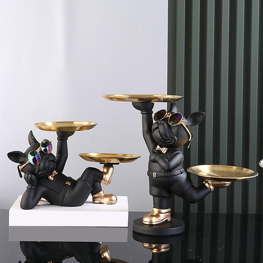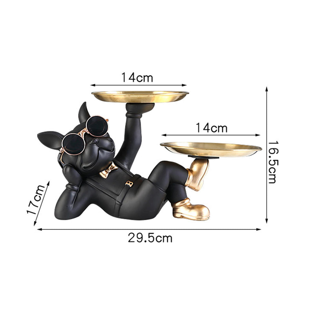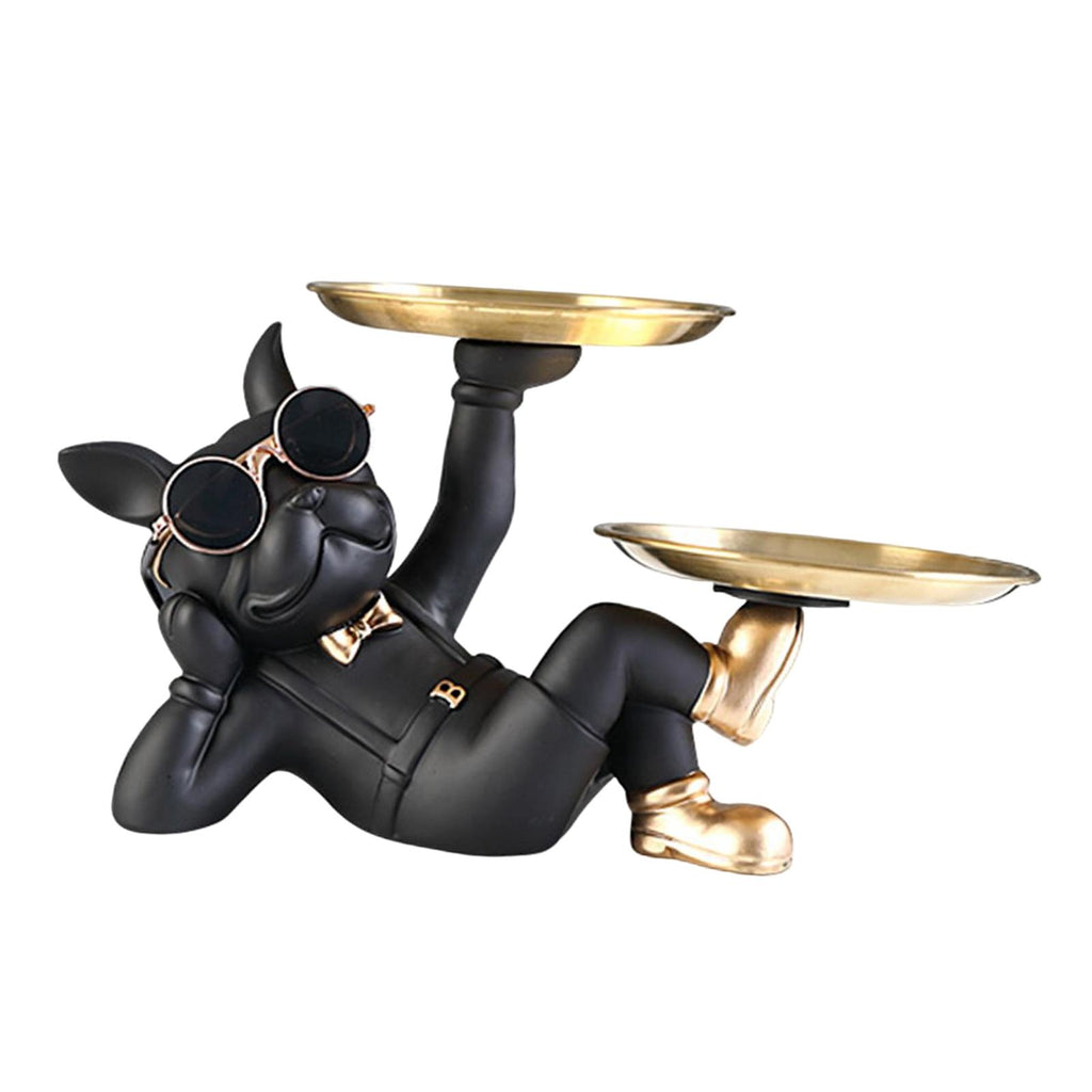 Maxbell Chic Resin French Bulldog Statue 2 Metal Trays with Glasses Home Decor Black