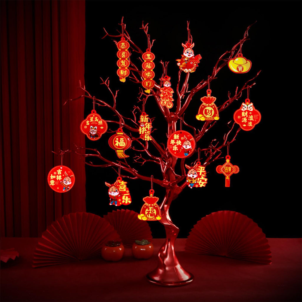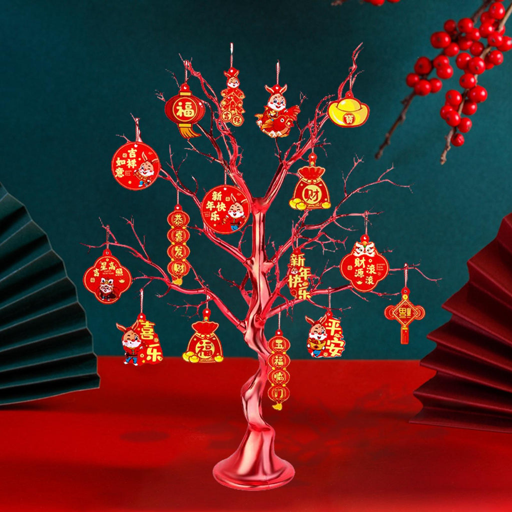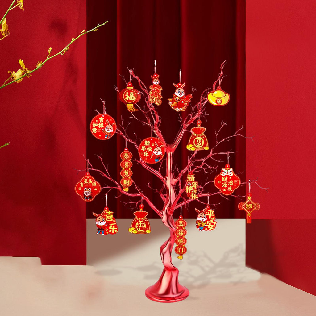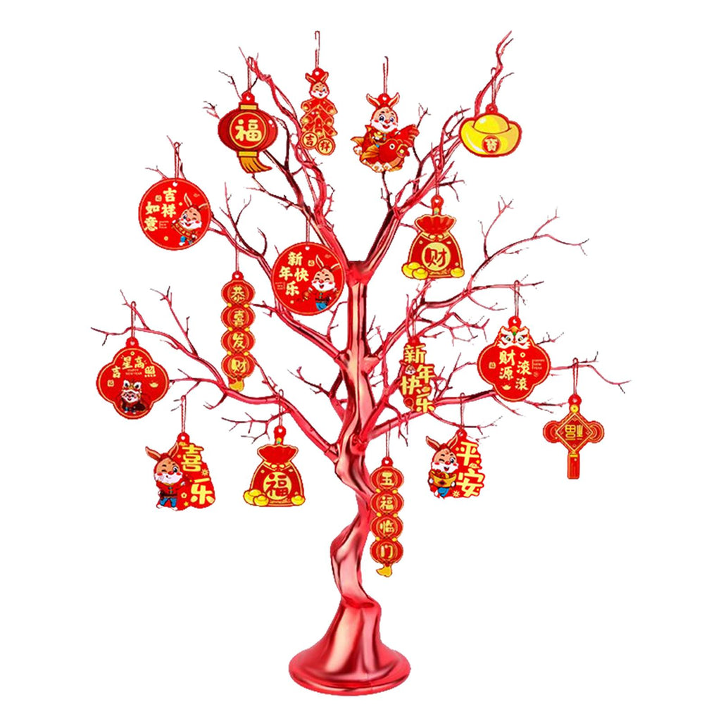 Maxbell Chinese New Year Decoration Artificial Bonsai Charm Pendants Home Decor with Pendant Red