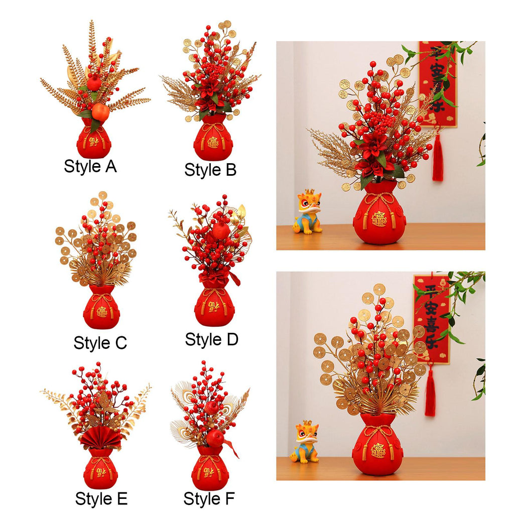 Maxbell Chinese New Year Ornament Spring Festival Holly Flower Bouquet Decor Desktop Style A
