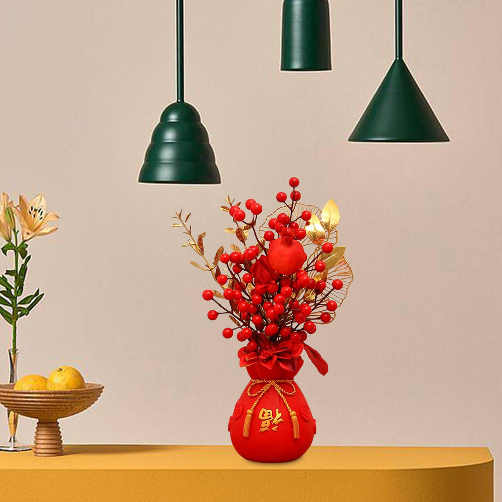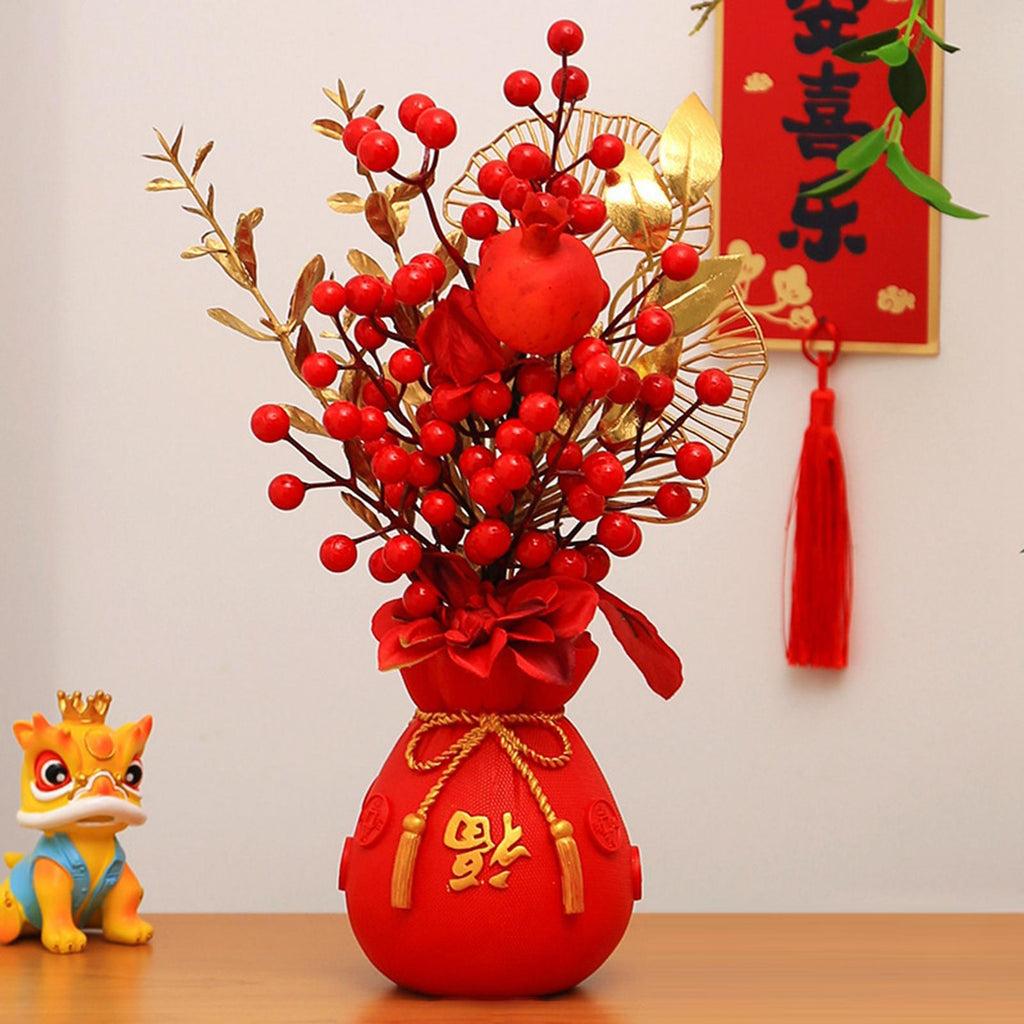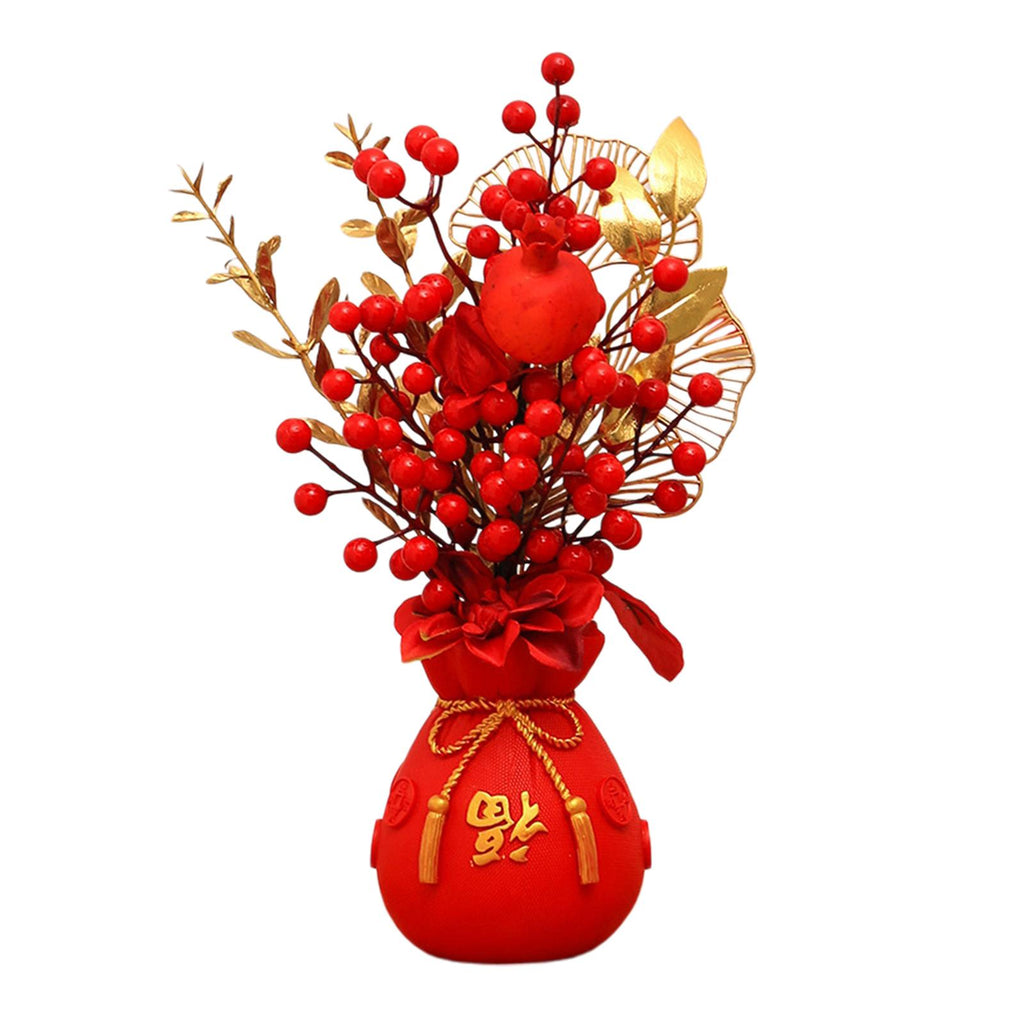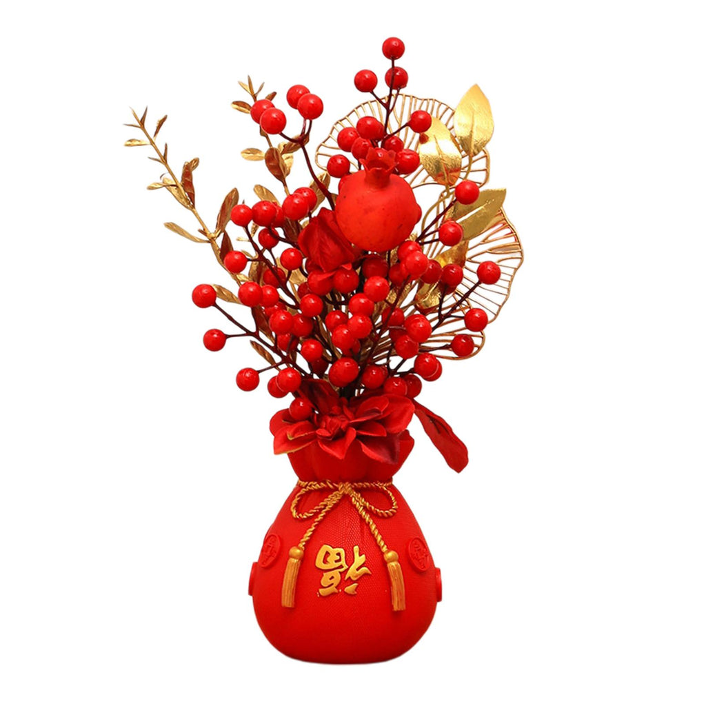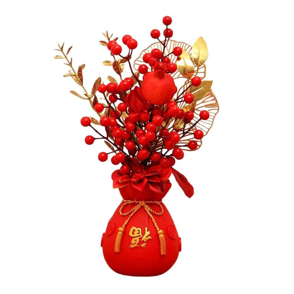 Maxbell Chinese New Year Ornament Spring Festival Holly Flower Bouquet Decor Desktop Style D