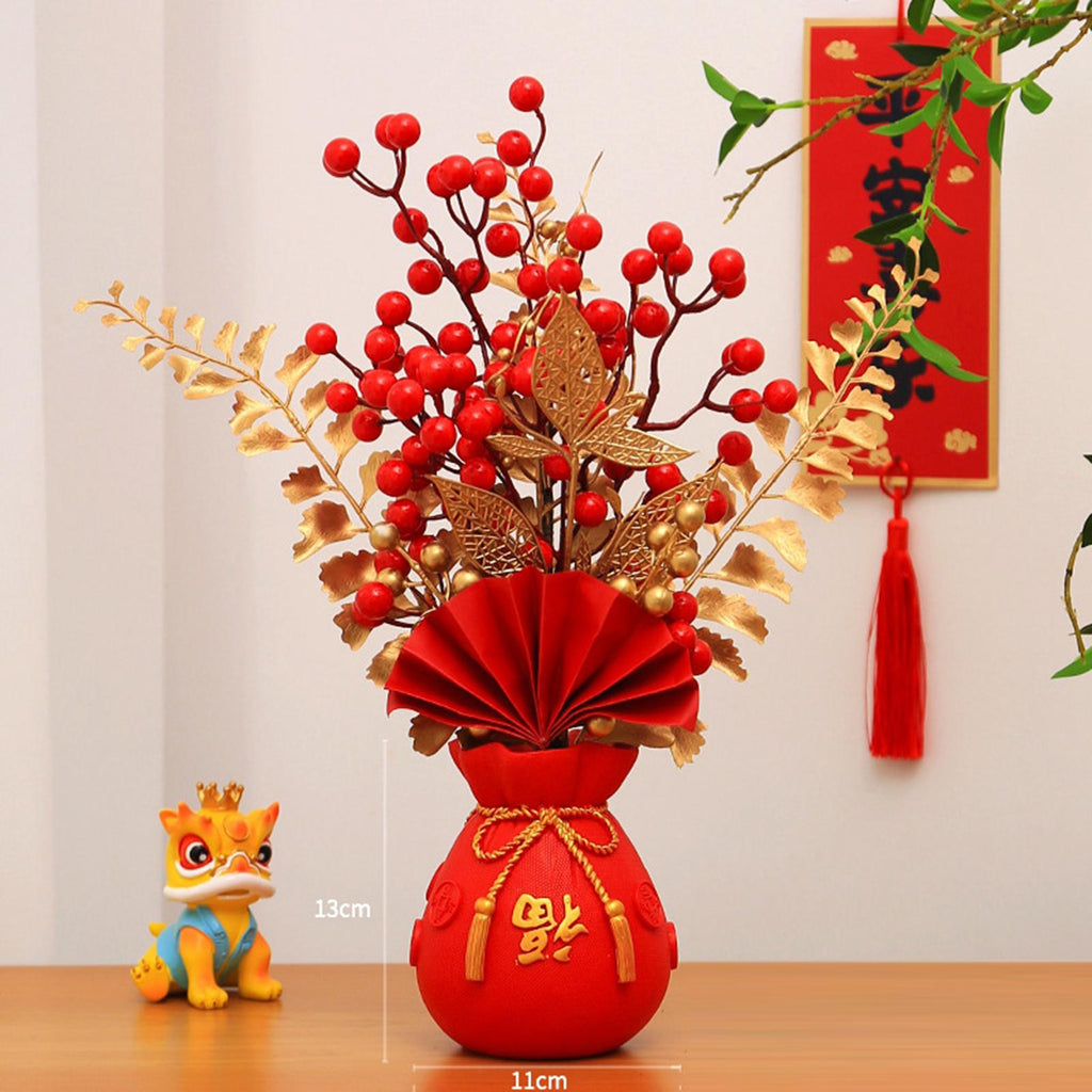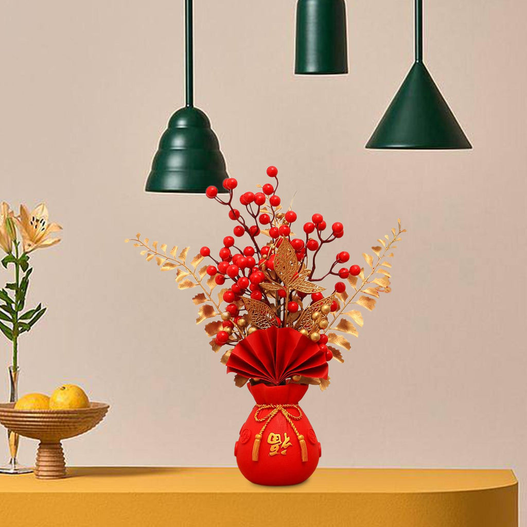 Maxbell Chinese New Year Ornament Spring Festival Holly Flower Bouquet Decor Desktop Style E