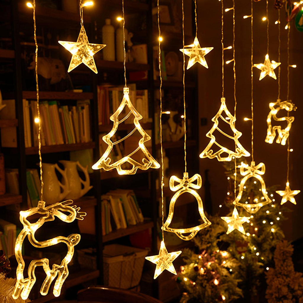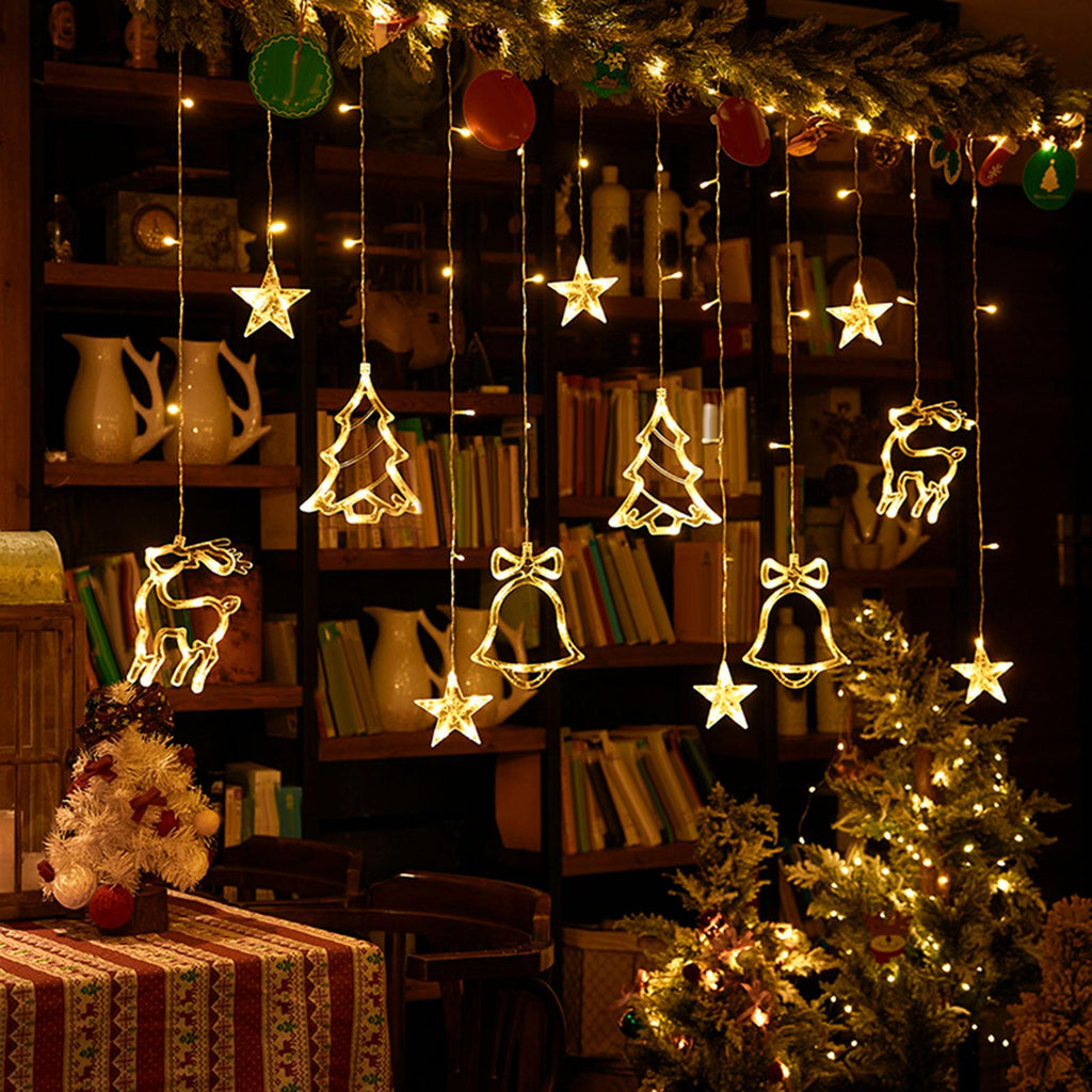 Christmas Hanging Decoration: with Christmas Tree and bells shape pendant lights,Exquisite Christmas decoration Chain Lights, adding a festival atmosphere.