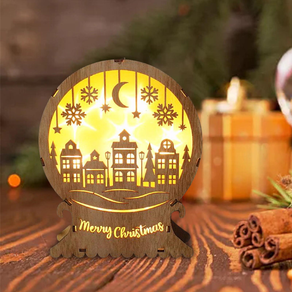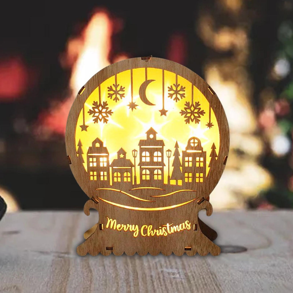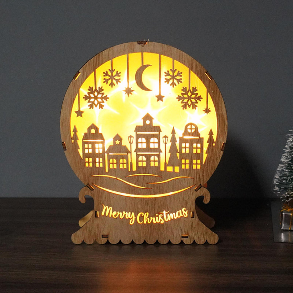 Maxbell Christmas Luminous Wooden House Creative Decorative for Home Style D