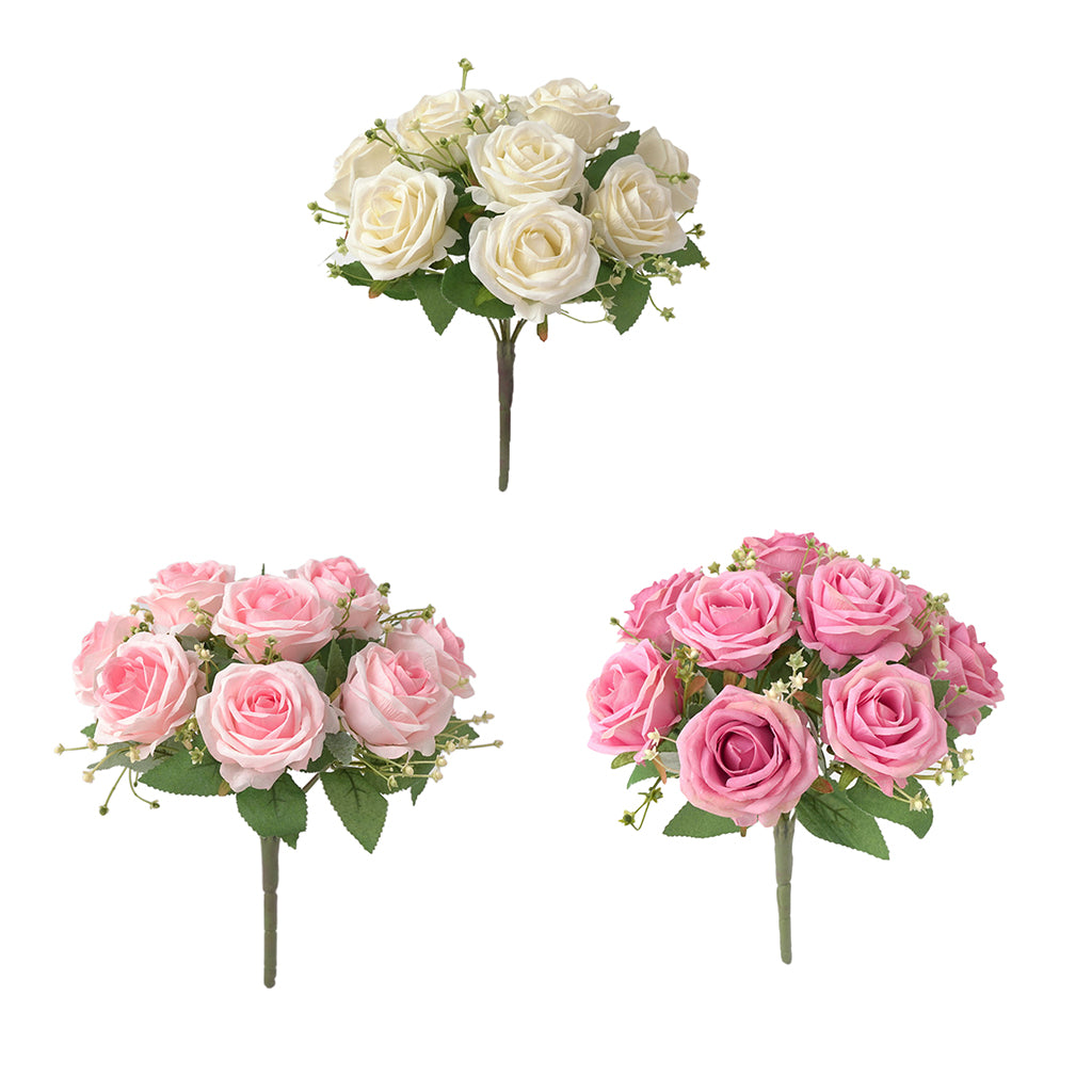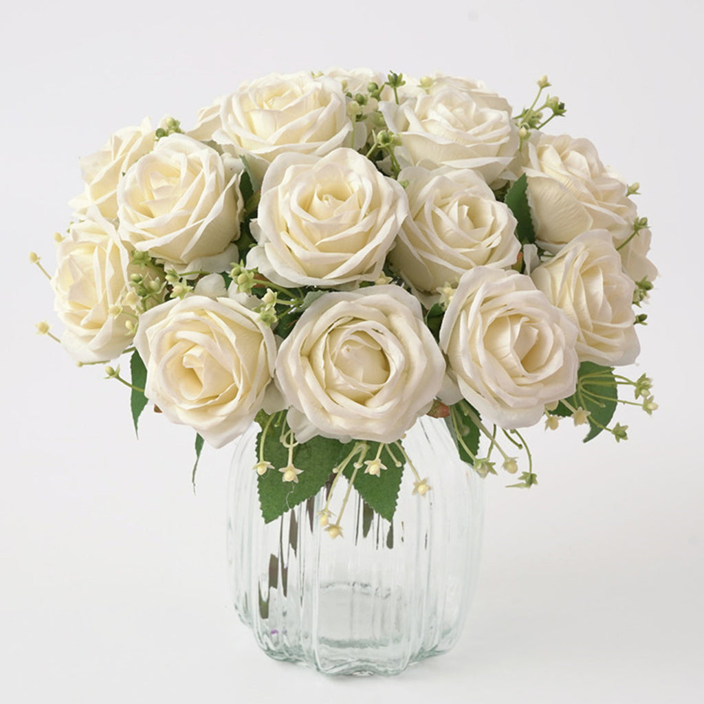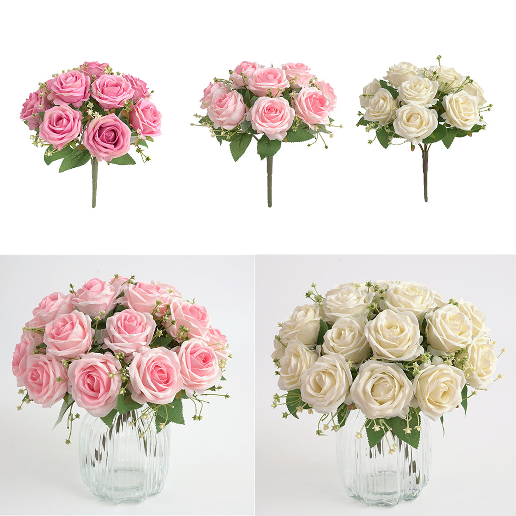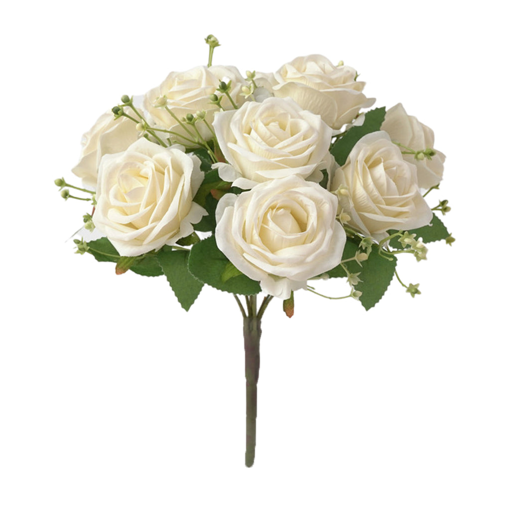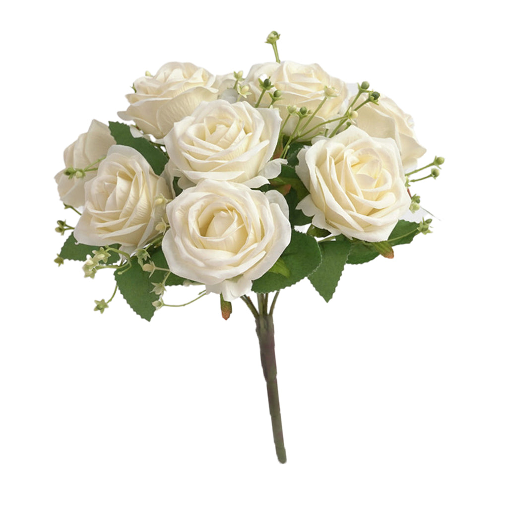Maxbell Cloth Fake Rose Flowers Bunch 9 Heads f/ Wedding Party Home Decor White