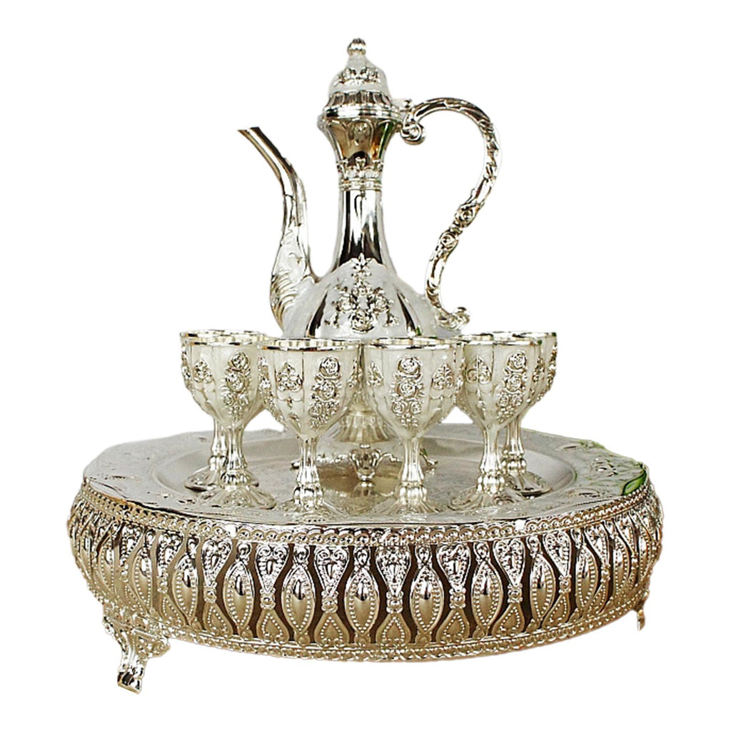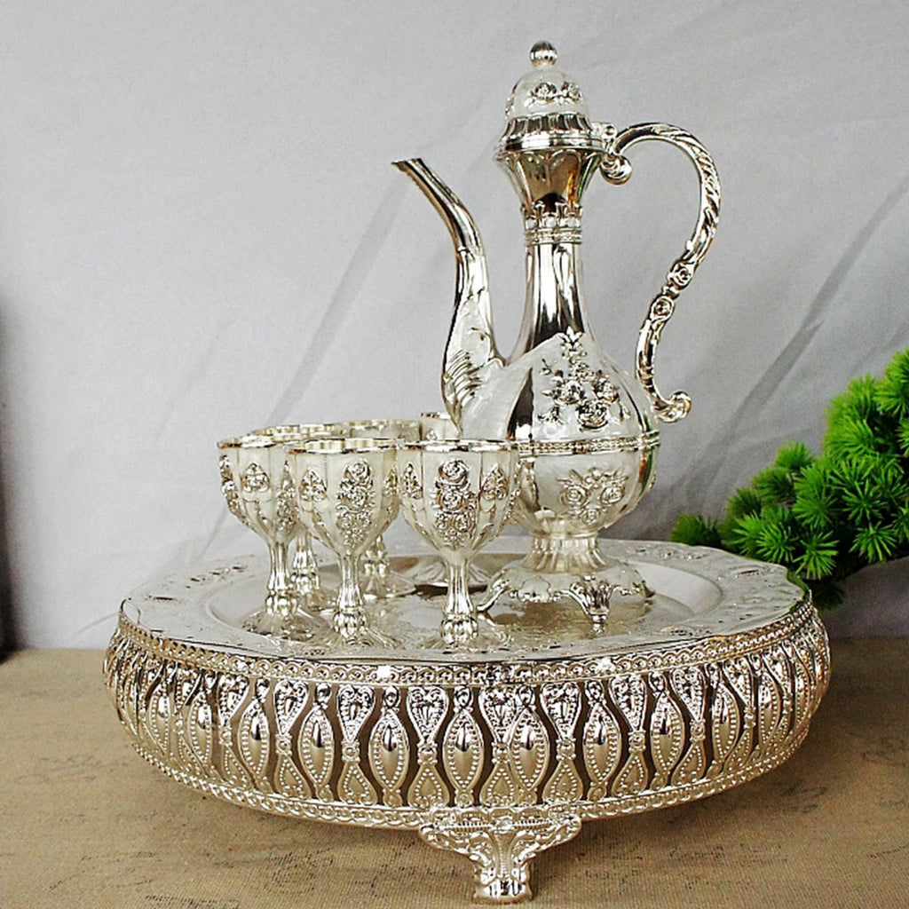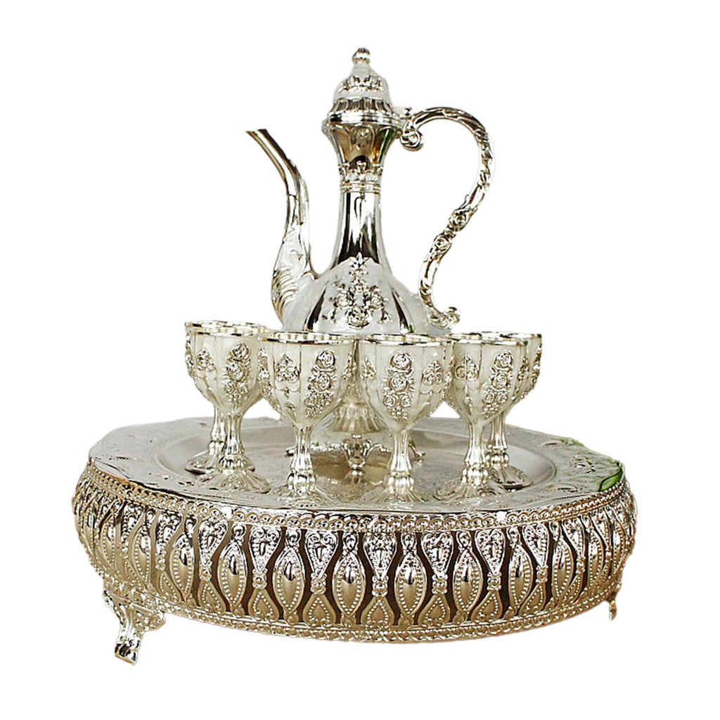 Maxbell Coffee Pot Set with Drinking Cups Tea Serving Set for Party Wedding Decor Argent