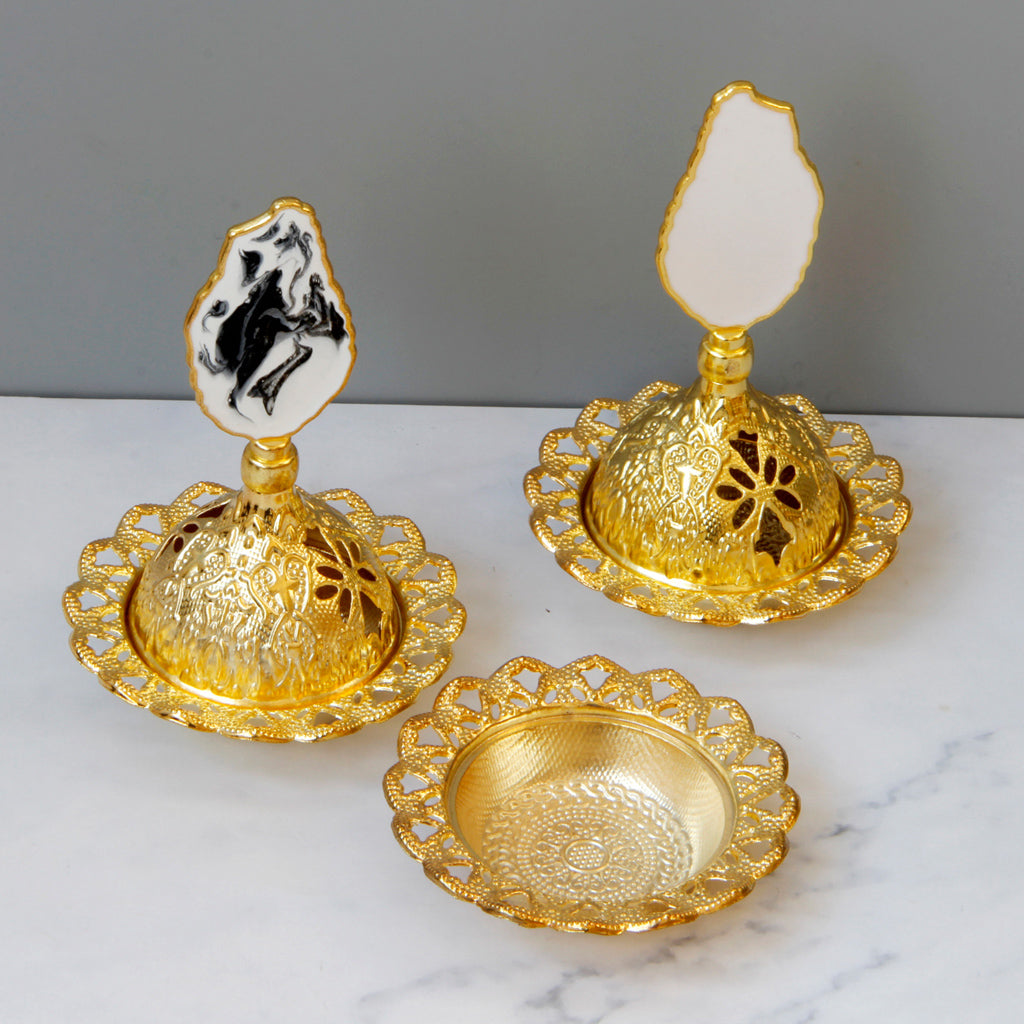 Multiple application, used as an burner for incense, also acts as a candle holder.