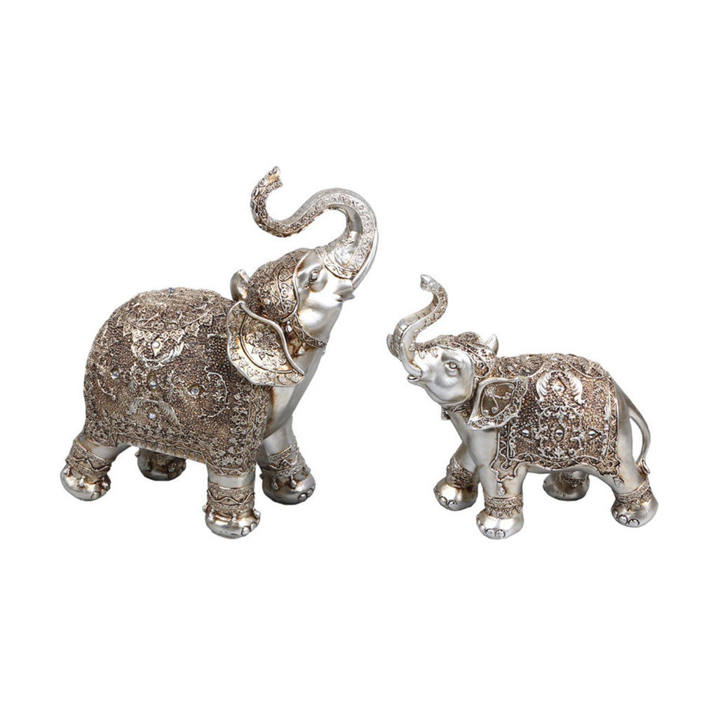 Maxbell Couple Elephants Statues Ornament Resin Figurine for Desk Home Decoration