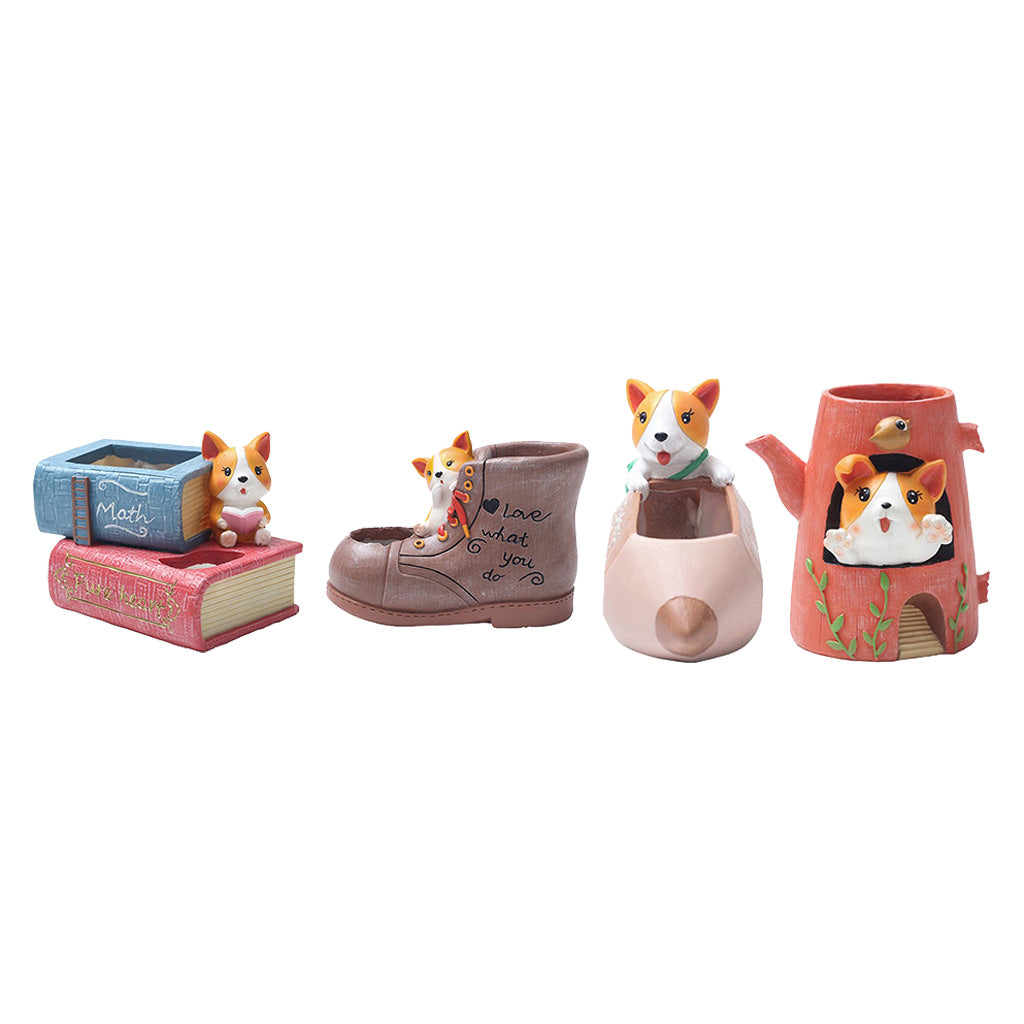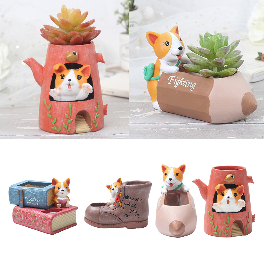 Maxbell Creative Resin Succulent Pot Garden Planter Corgi Figurine Home Decor Pencil
