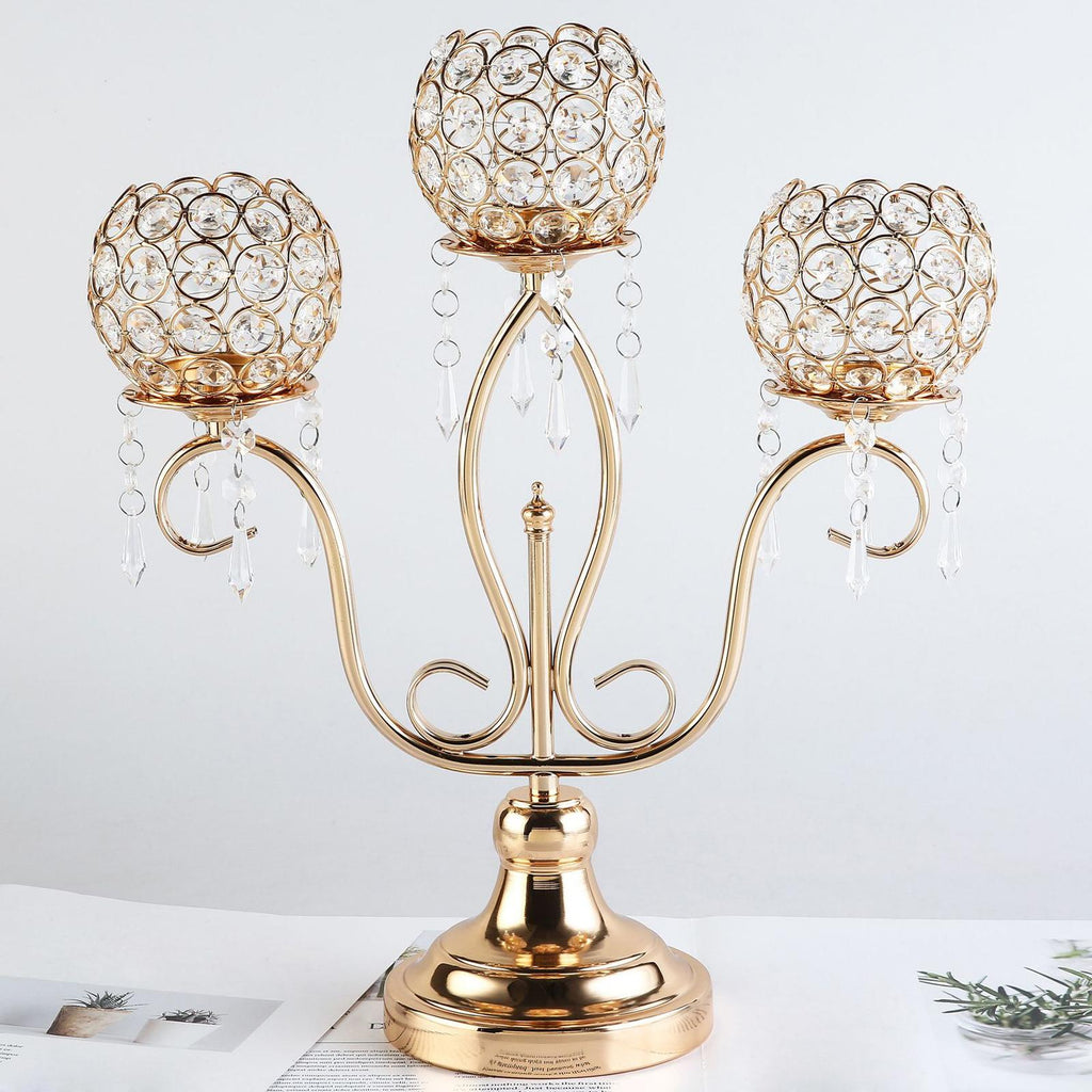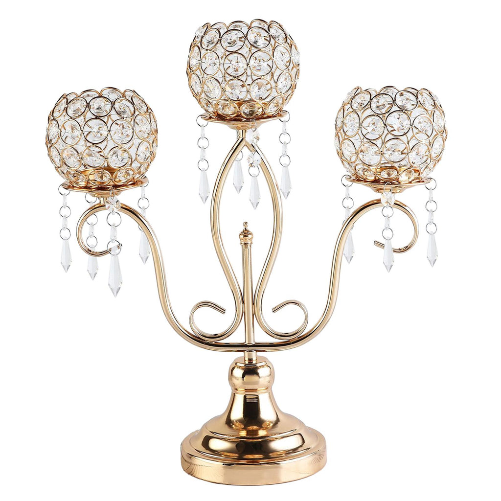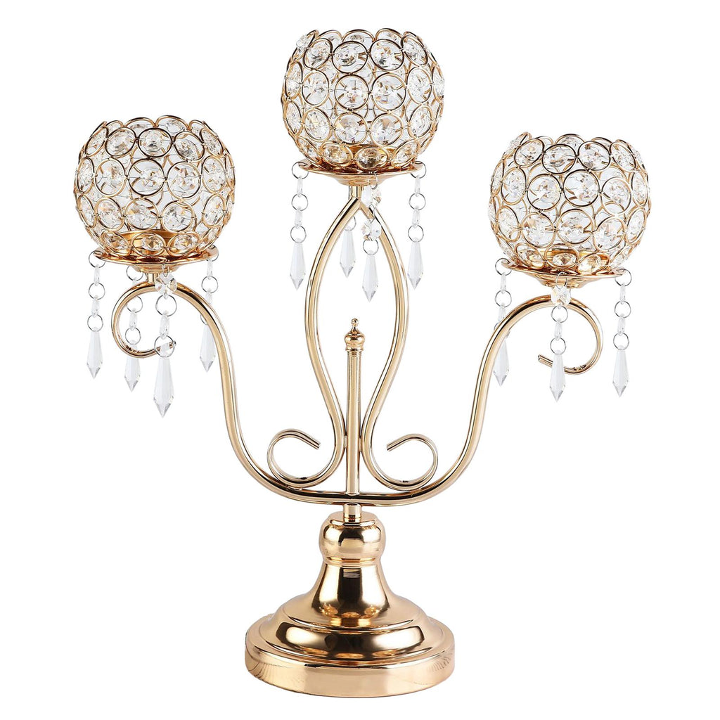 Maxbell Crystal Candle Holder 3 Arms Tea Light Holders for Wedding Home Decor Gift