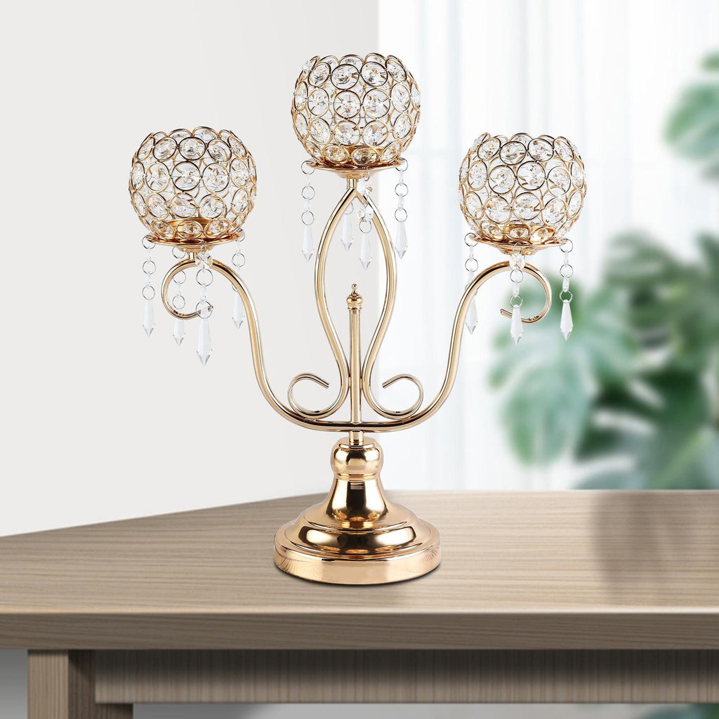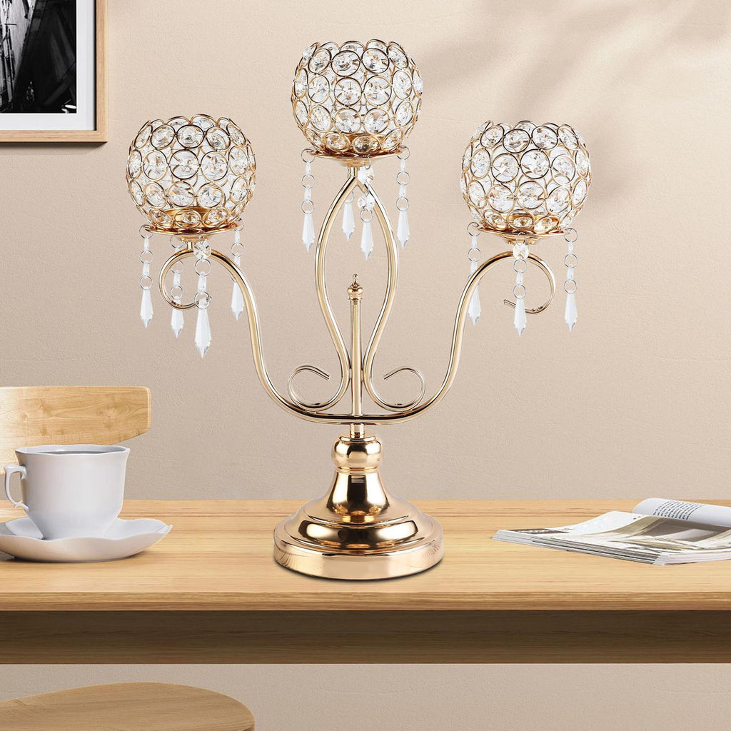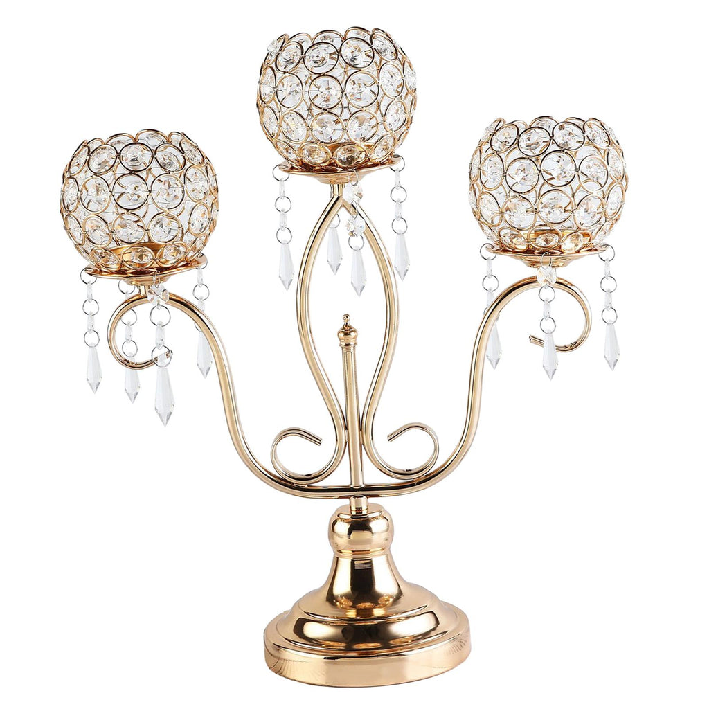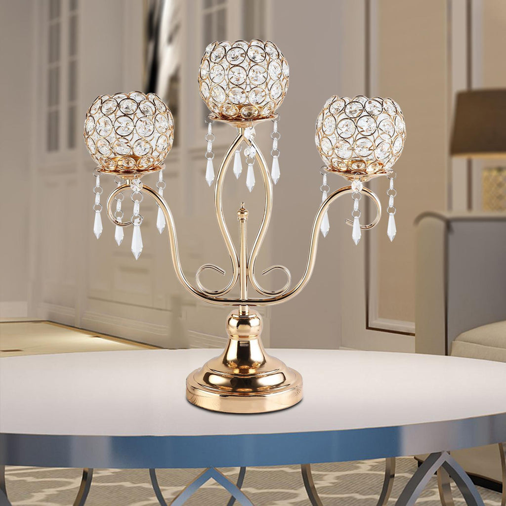 Maxbell Crystal Candle Holder 3 Arms Tea Light Holders for Wedding Home Decor Gift