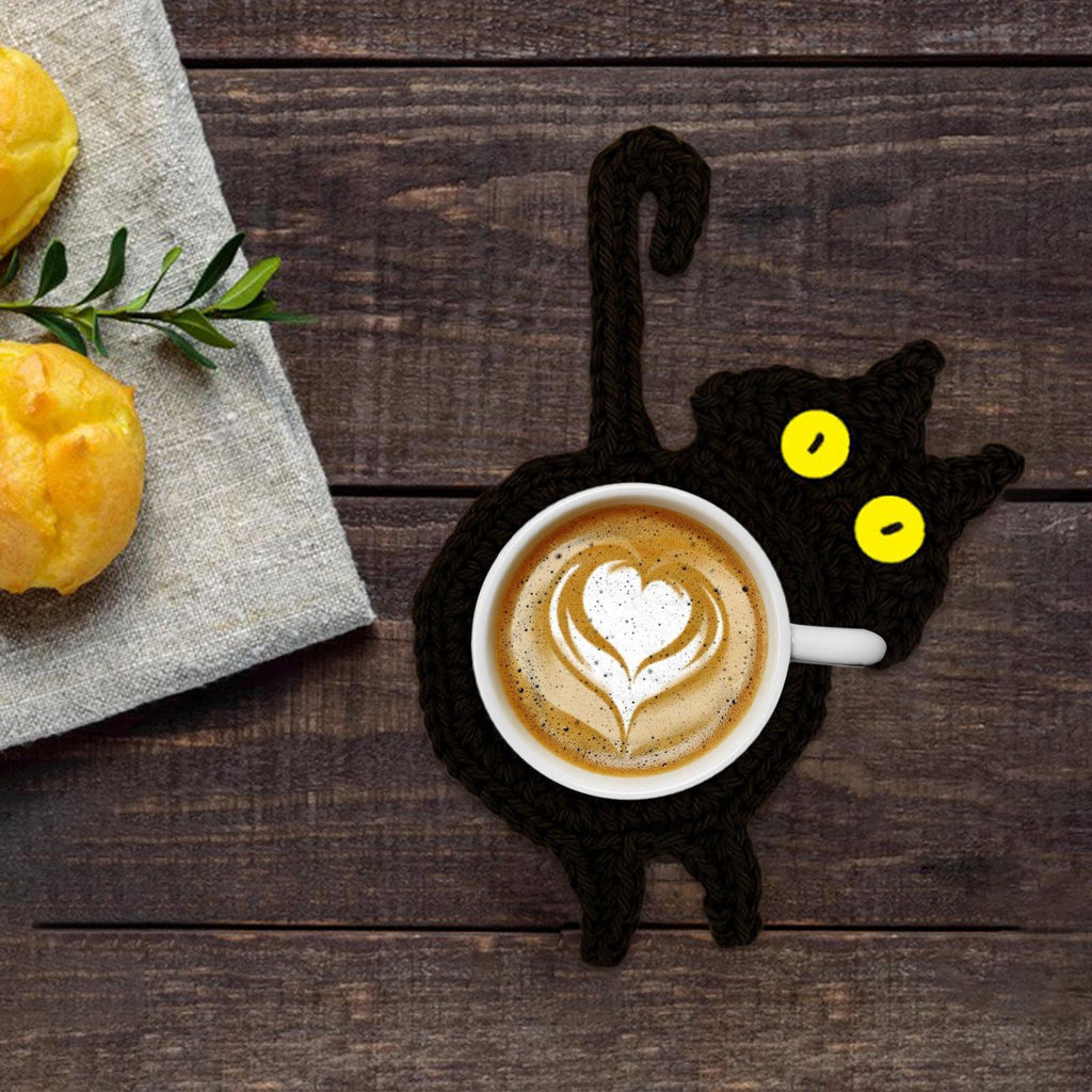 Maxbell Cute Coffee and Tea Drink Coaster Drink Mat for Table Drinks Decor Black