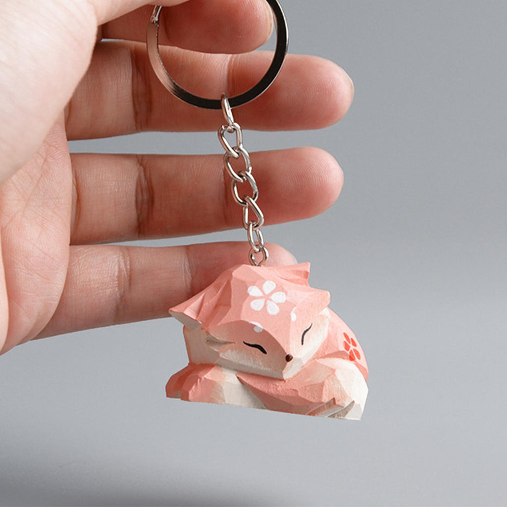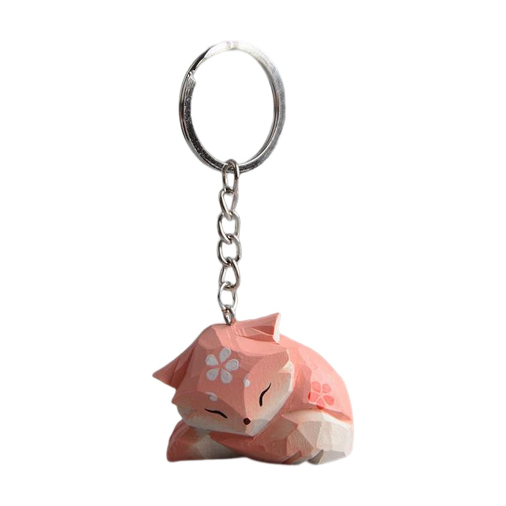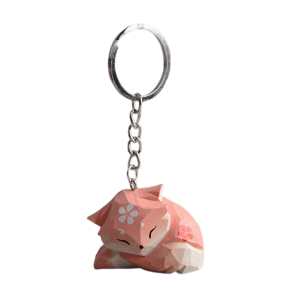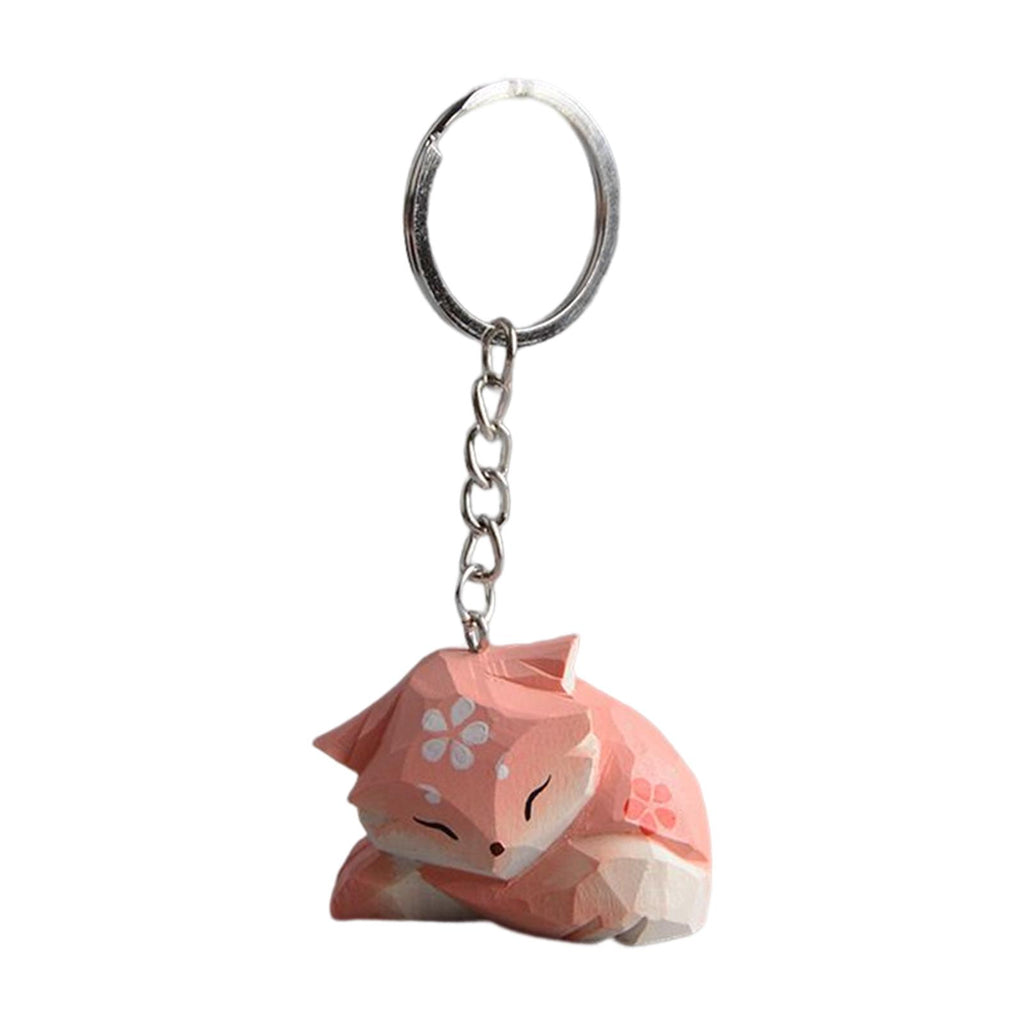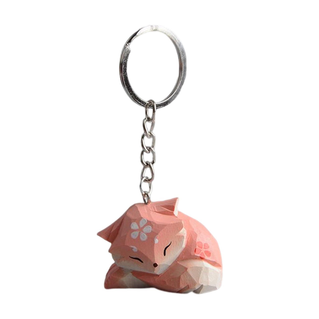 Maxbell Maxbell Cute Wooden Lowrie Statue Fogurines Animal Sculpture Decoration Craft Arts With Keychain