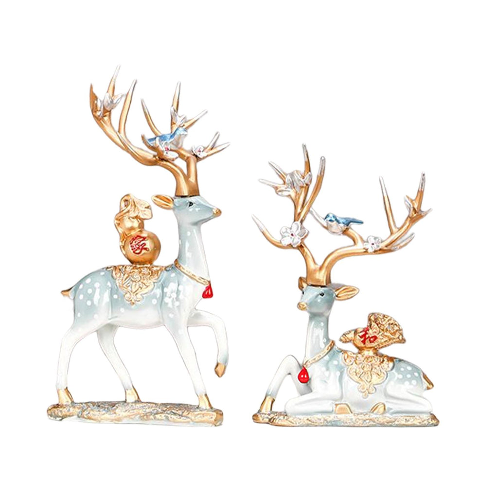 Maxbell Deer Statues Nordic Style Reindeer Figurines for Fireplace Bedroom Decor Blue